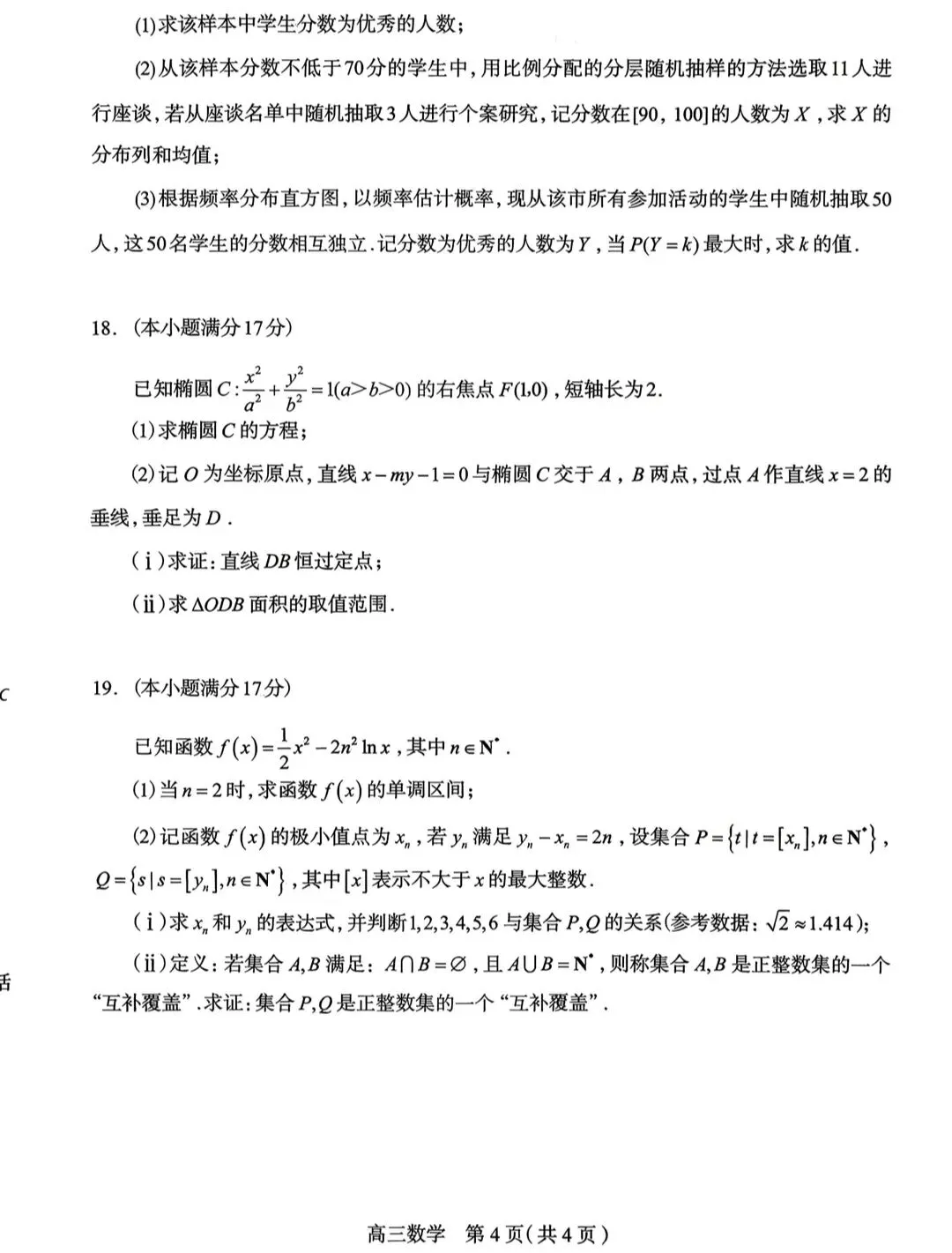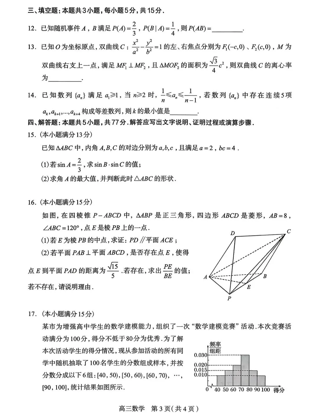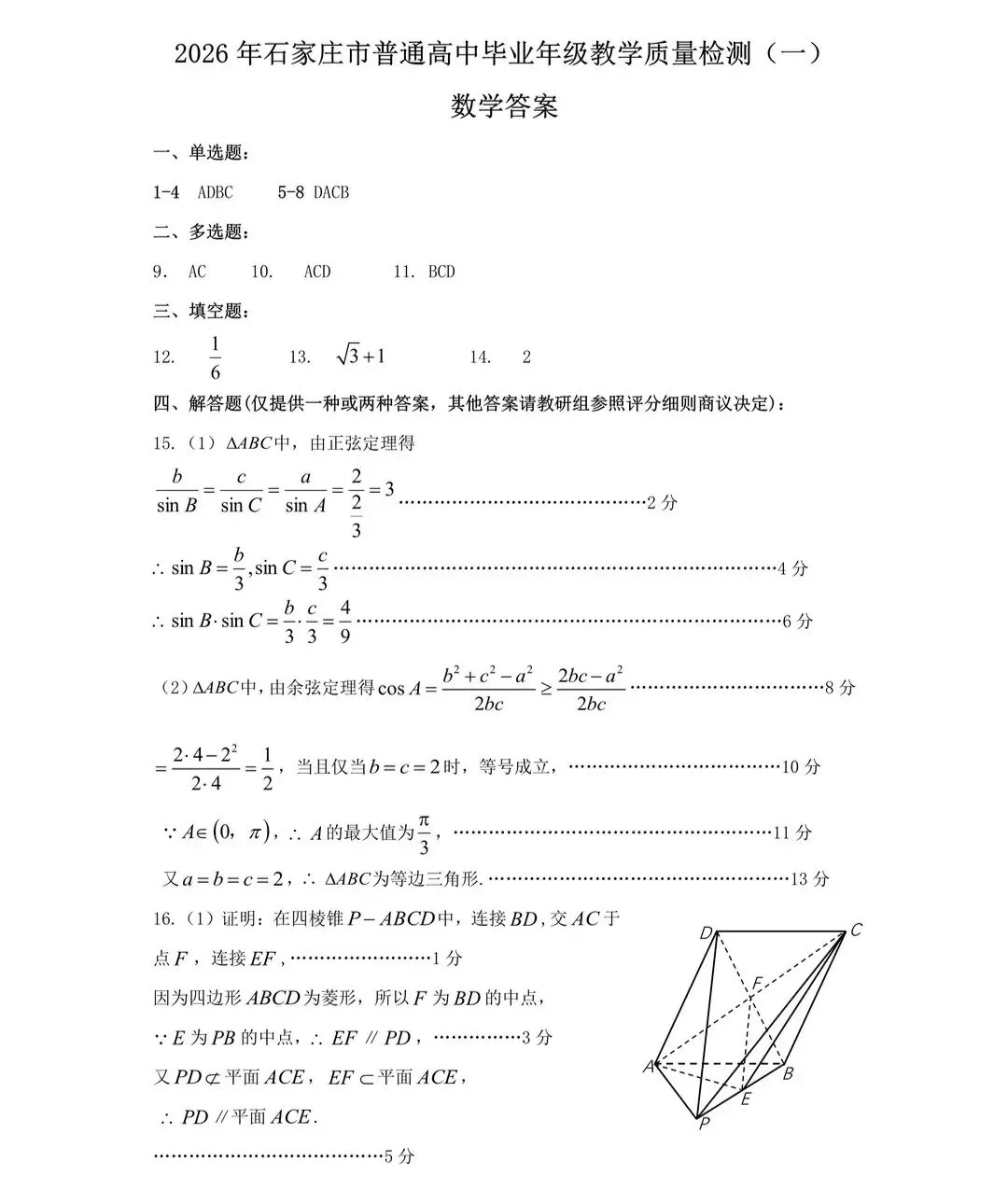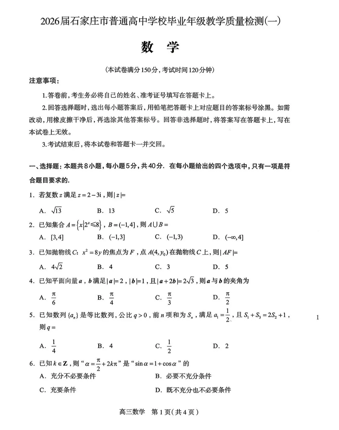 >石家庄市2026届高三高考模拟考数学试卷