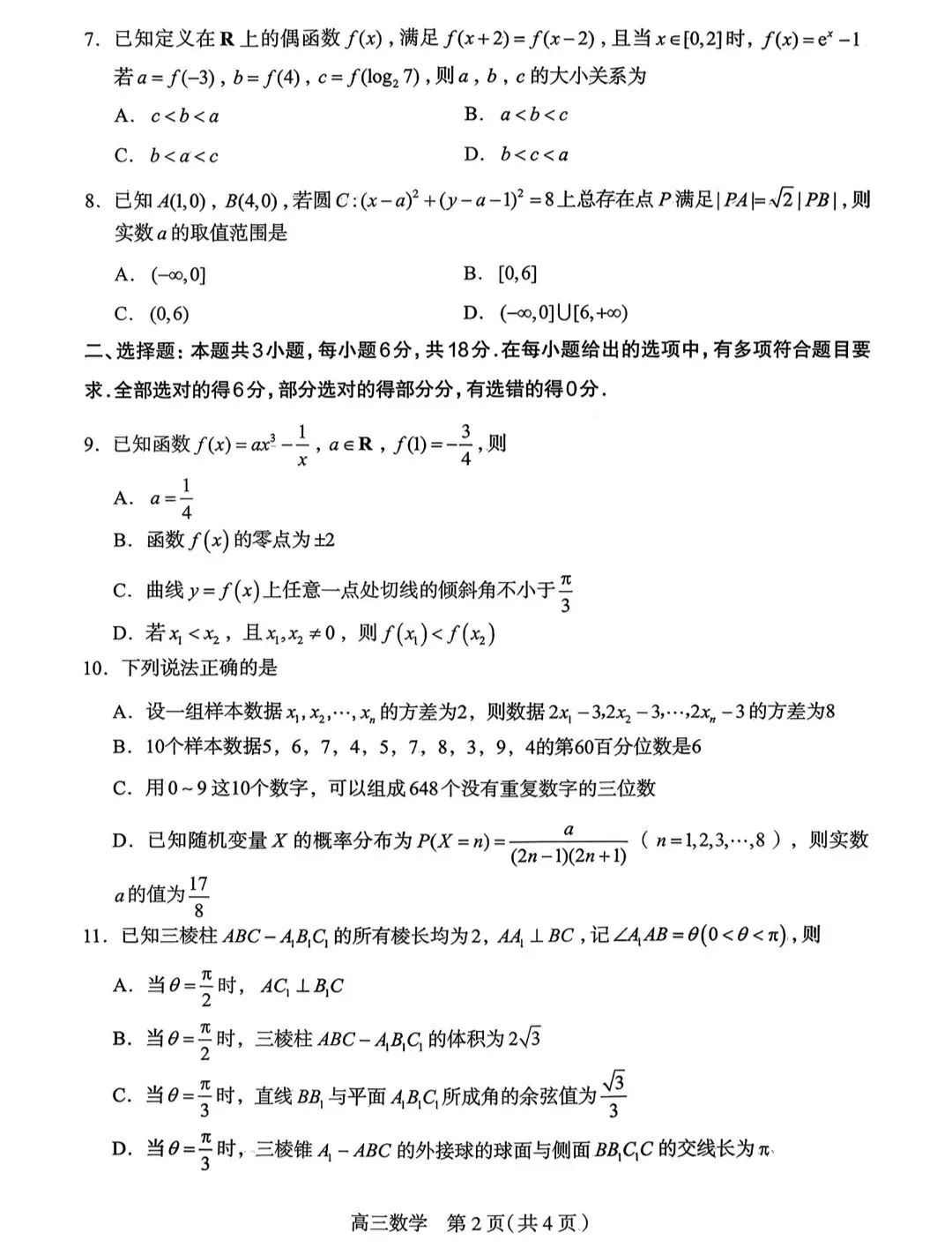 【高三】2026年厦门二检数学试卷