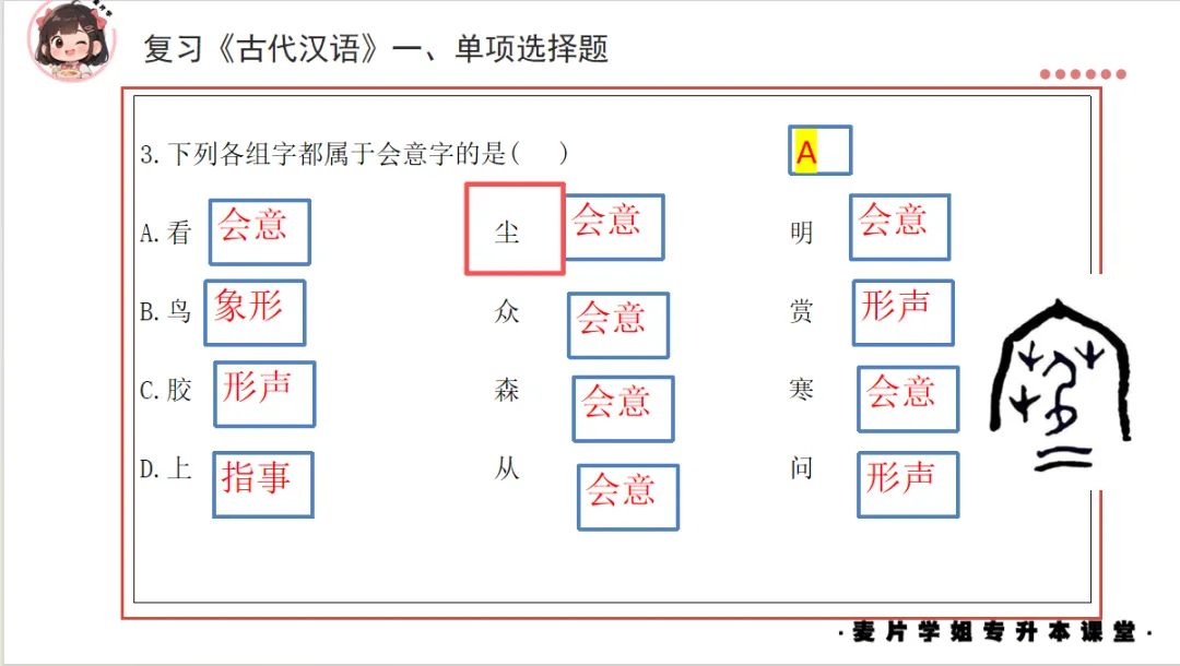 曾经在课上做过类似的题目并补充过“尖”的造字法