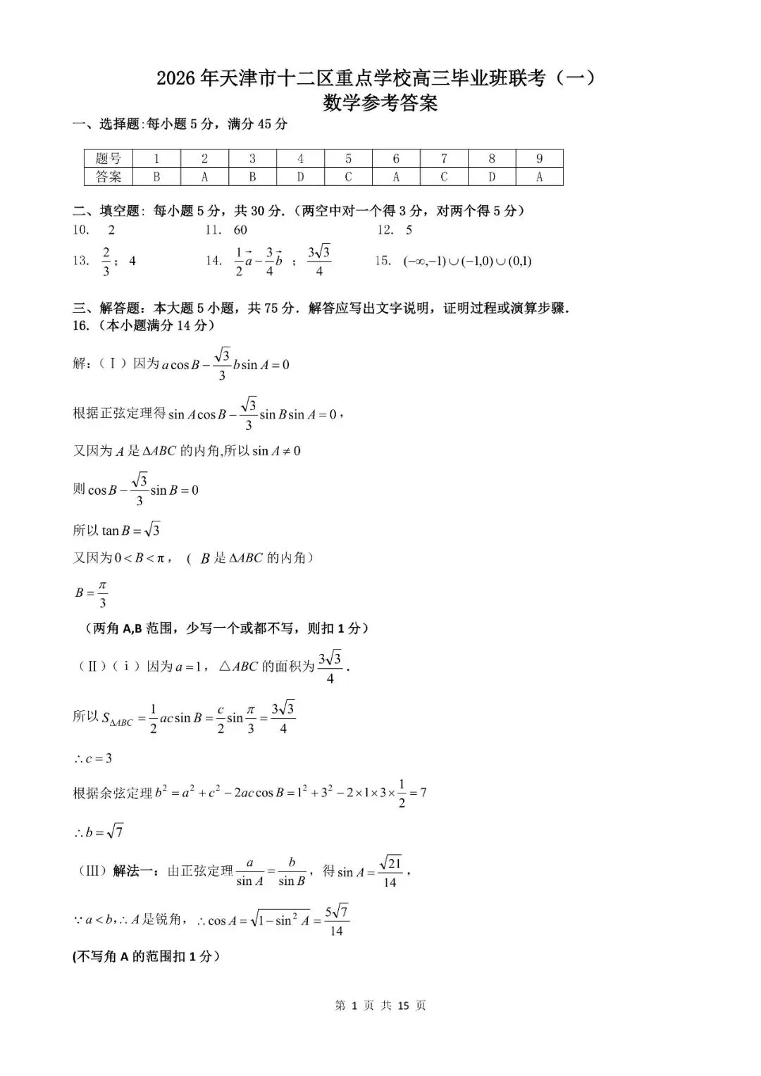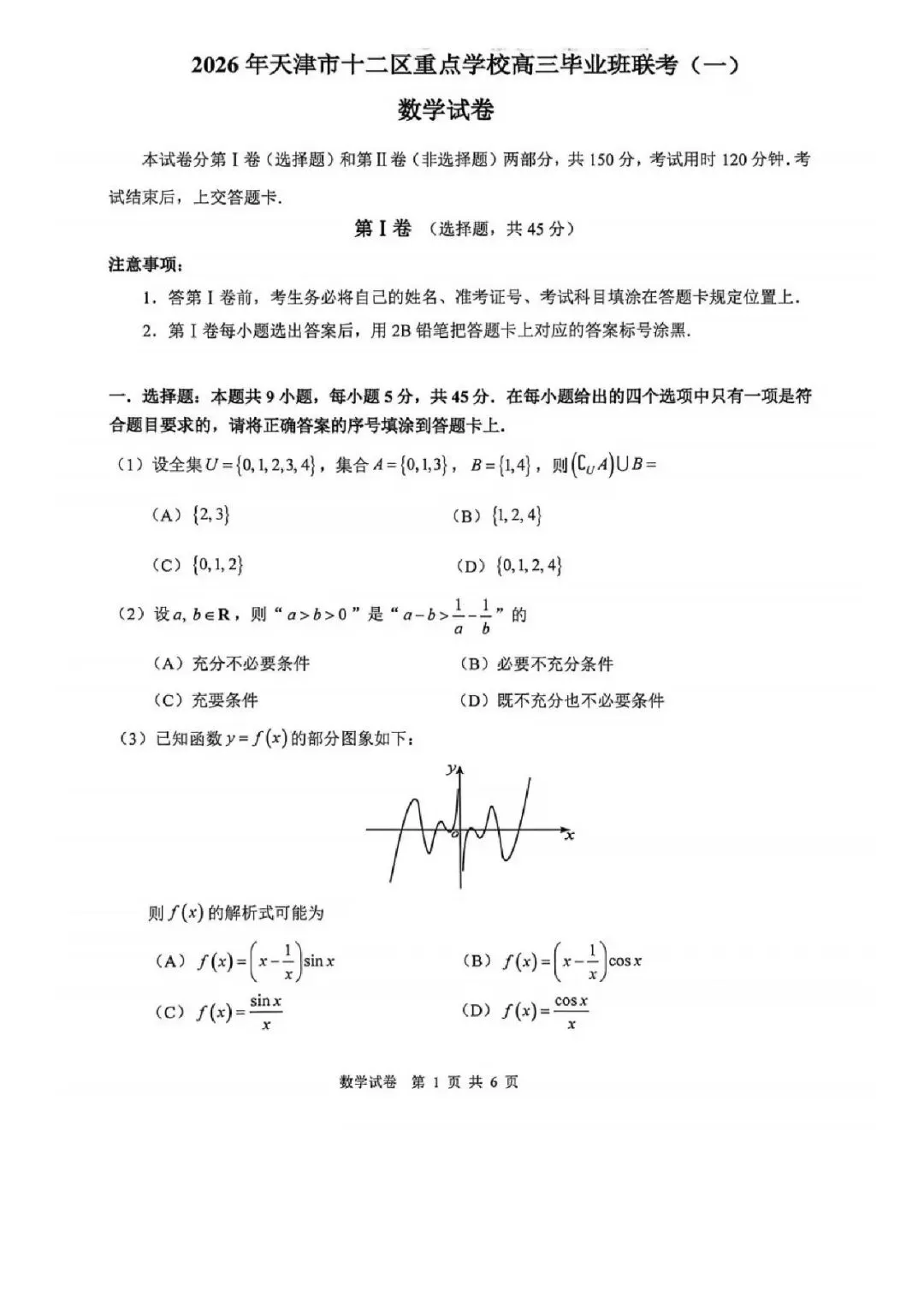 天津市十二区重点校一模数学试卷