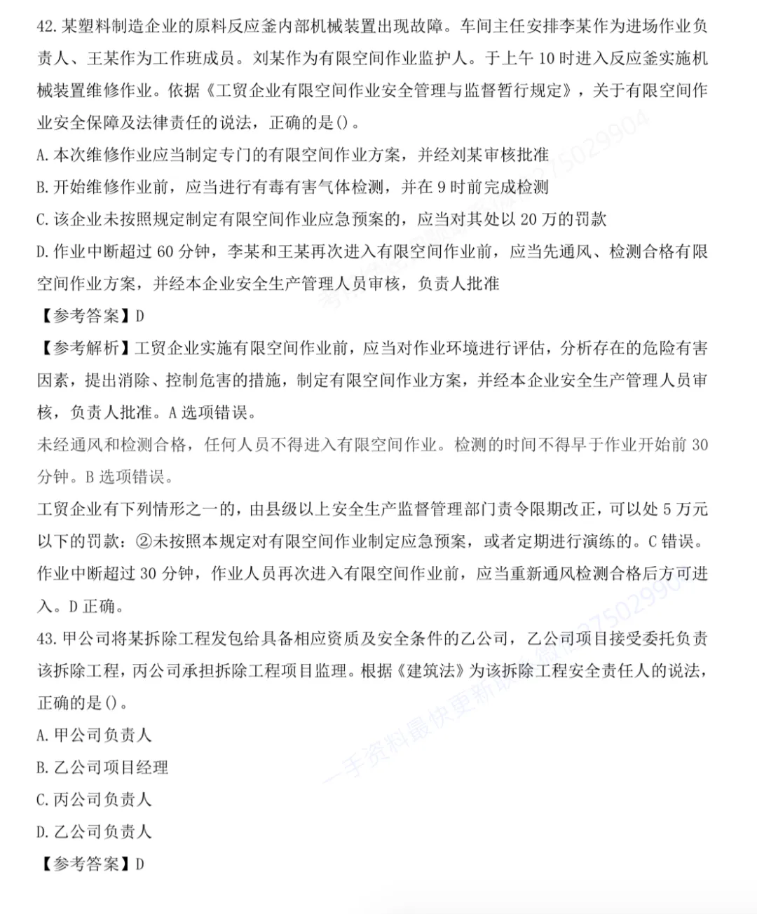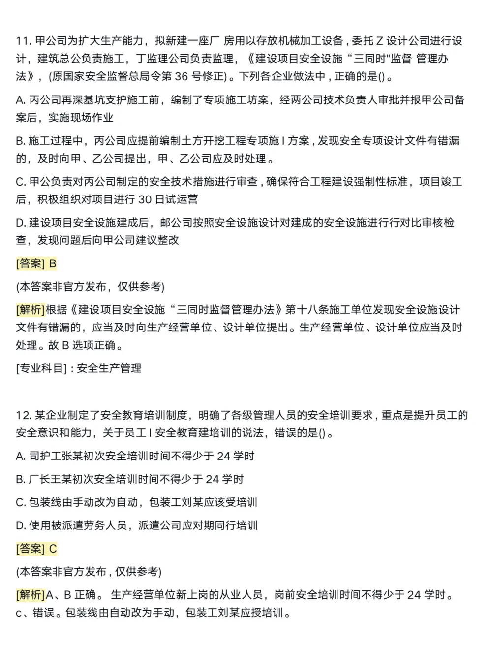 B选项错误:厂长属主要负责人,初次培训不是32或者48学时。