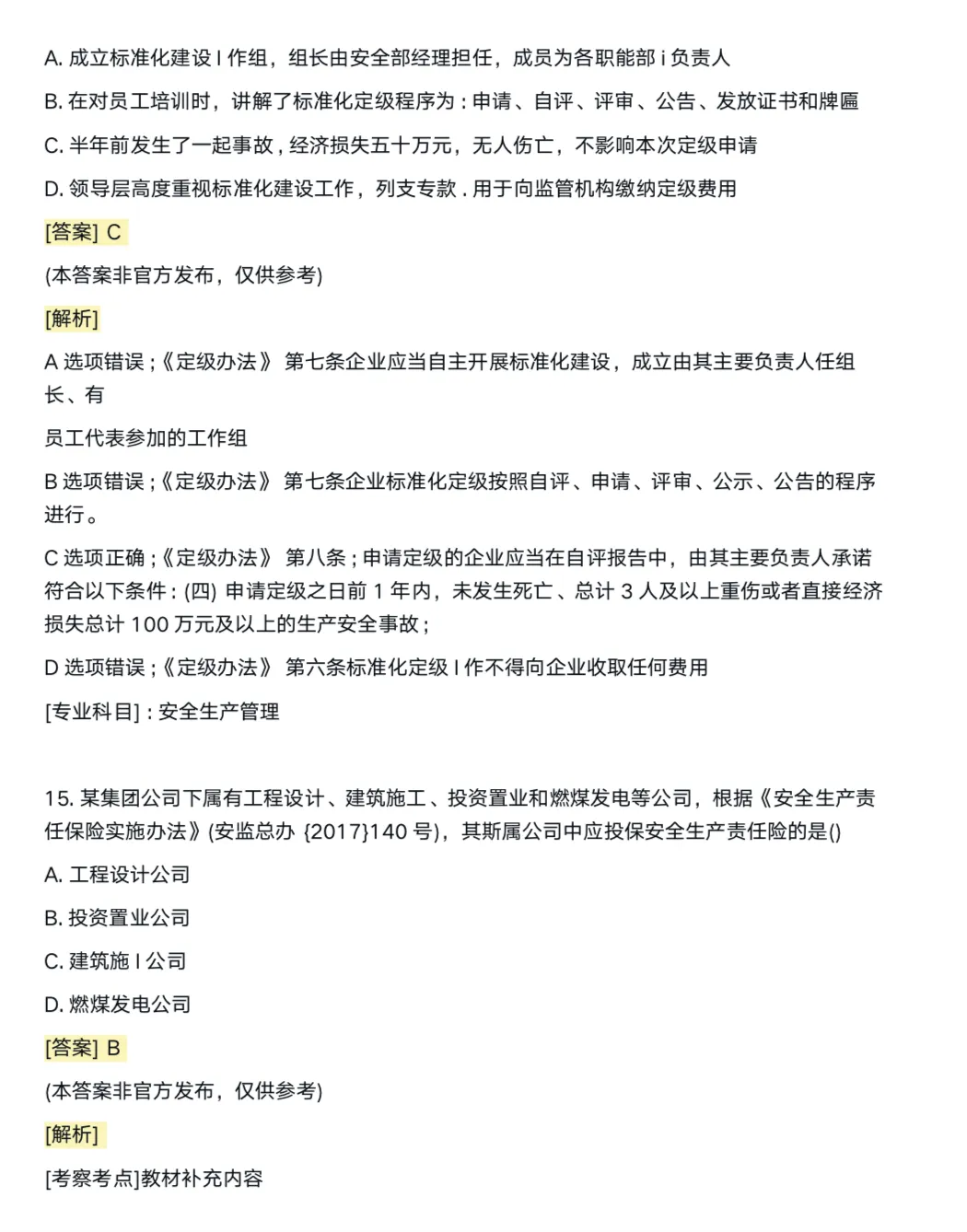 C选项正确;《定级办法》第八条;申请定级的企业应当在自评报告中,由其主要负责人承诺符合以下条件:(四)申请定级之日前1年内,未发生死亡、总计3人及以上重伤或者直接经济损失总计100万元及以上的生产安全事故;D选项错误;《定级办法》第六条标准化定级工作不得向企业收取任何费用