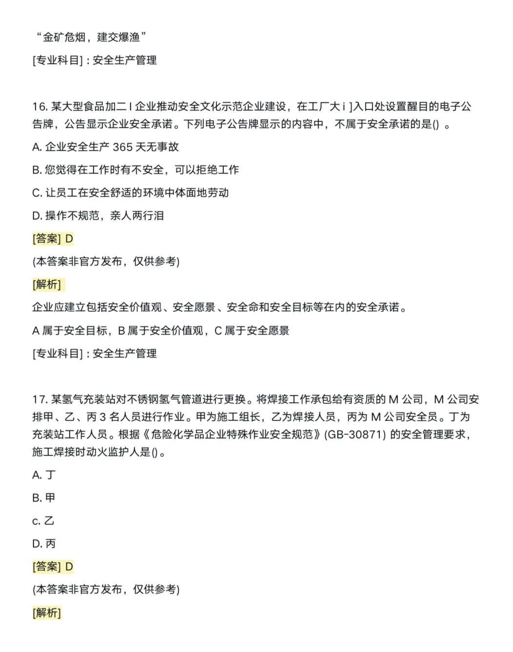 【解析】企业应建立包括安全价值观、安全愿景、安全使333命和安全目标等在内的安全承诺。
