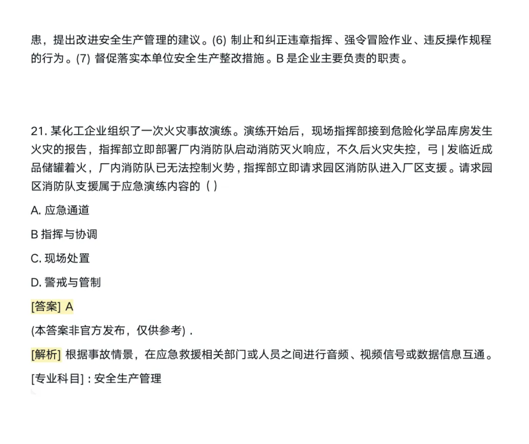 C正确;演练脚本是应急演练工作方案具体操作实施的文件,帮助参演人员全面掌握演练进程和内容。
