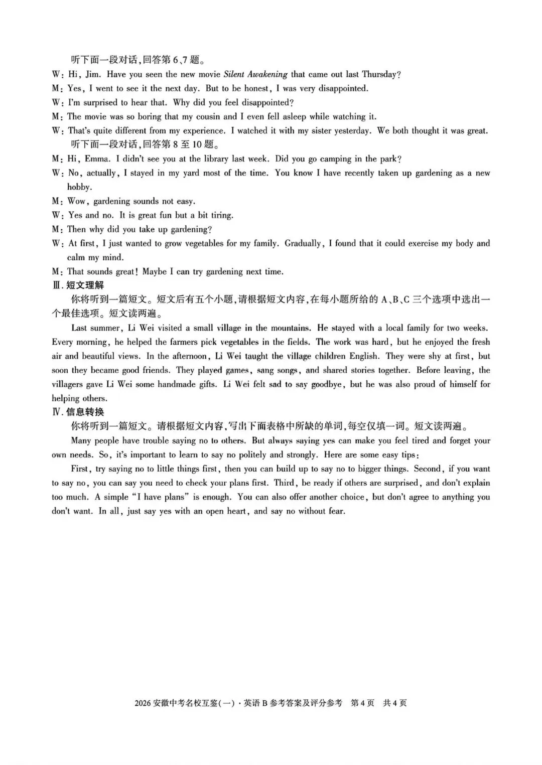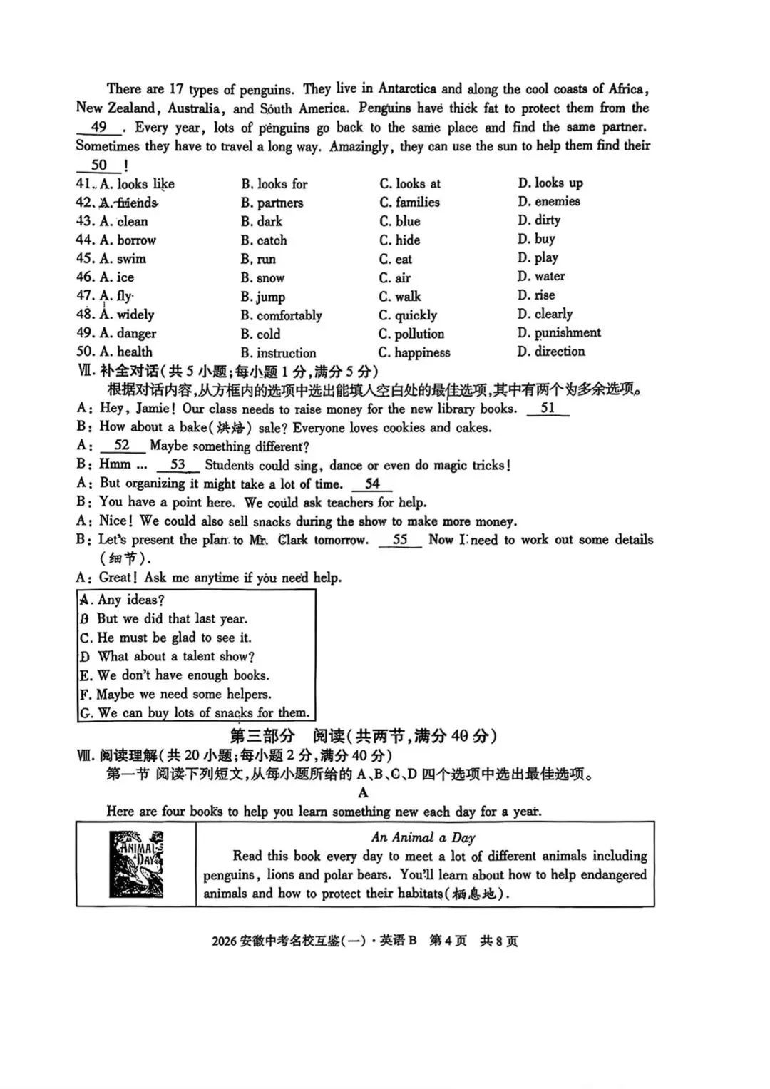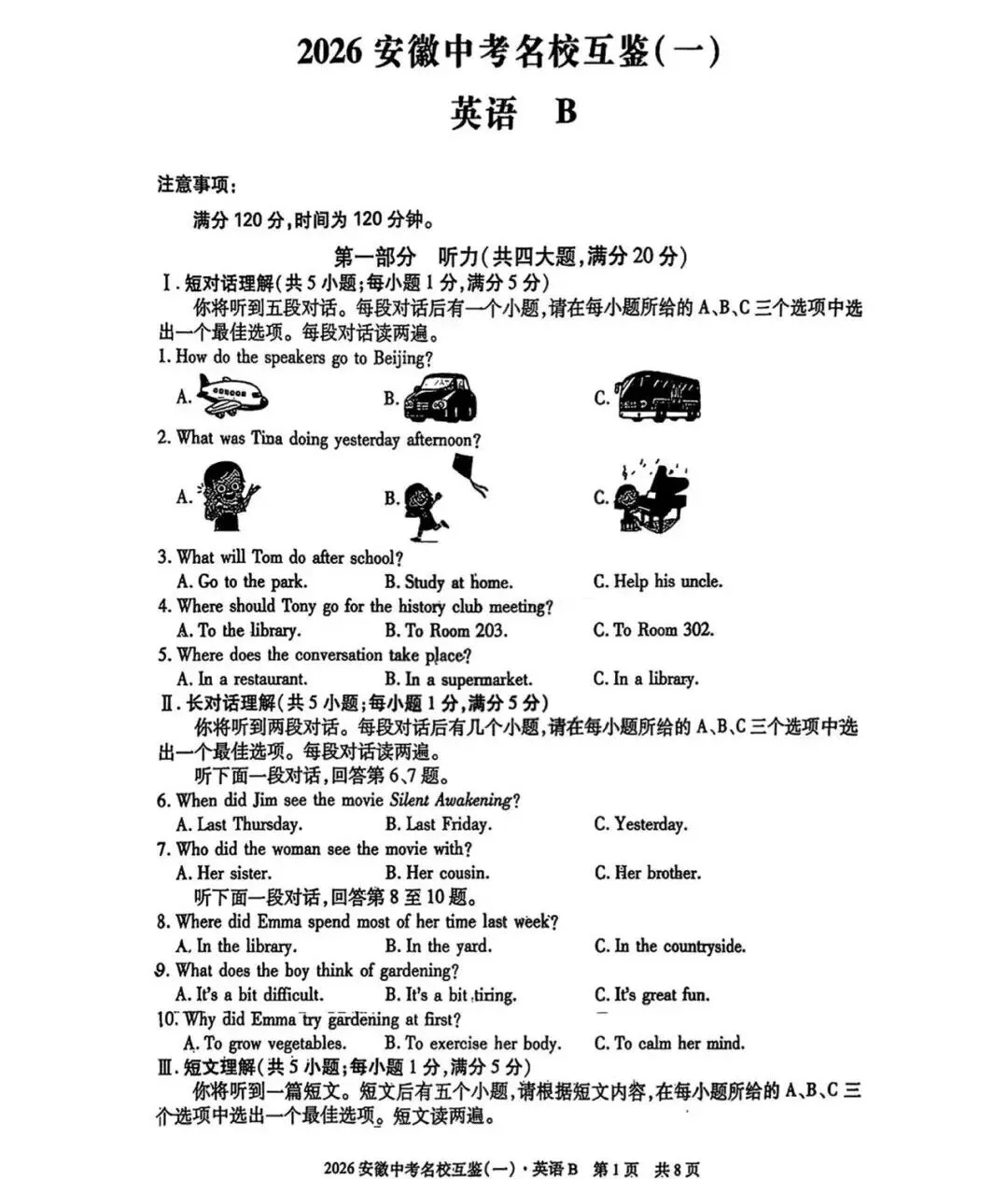 >2026安徽中考名校互鉴(一)试卷B英语试卷+答案