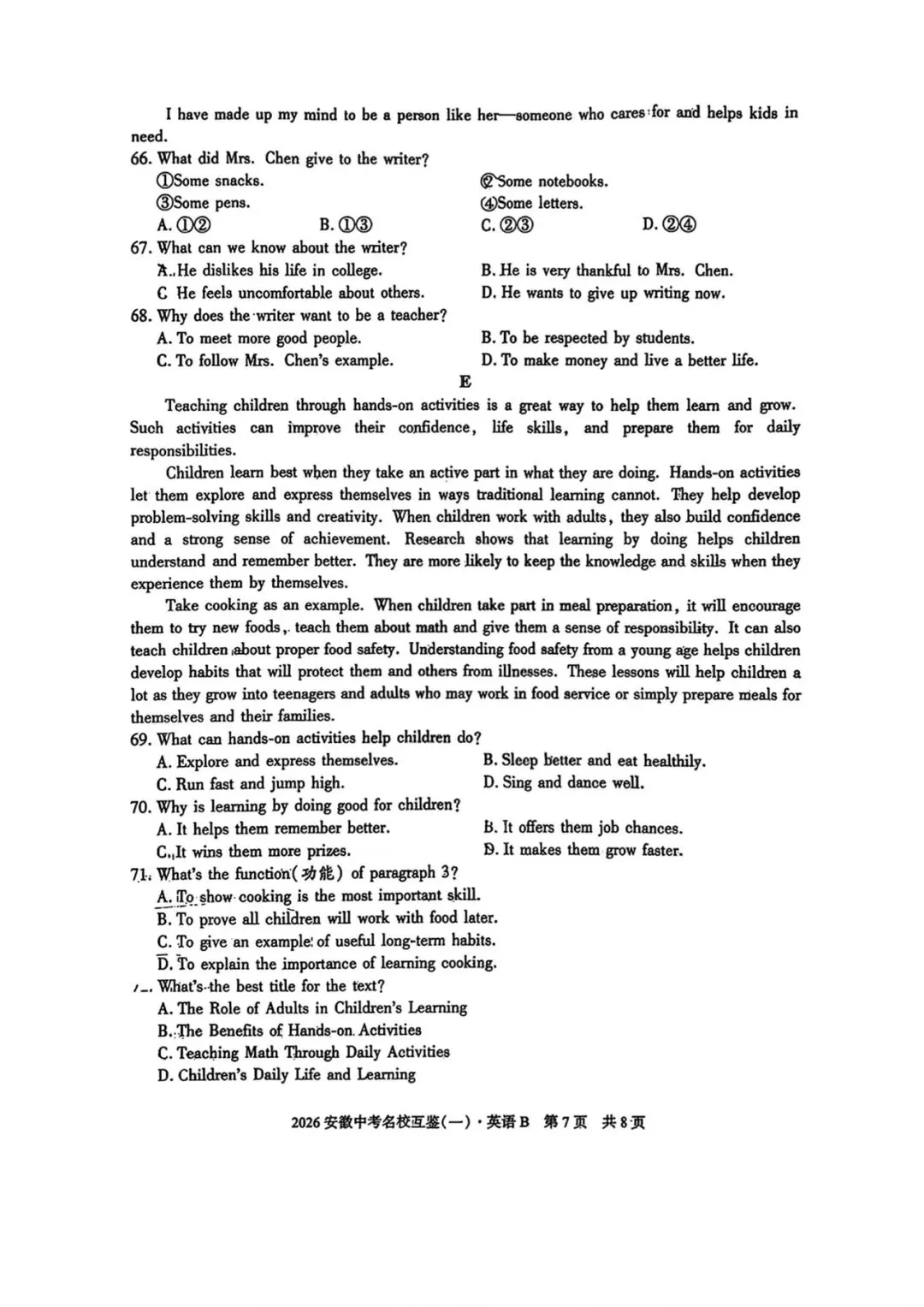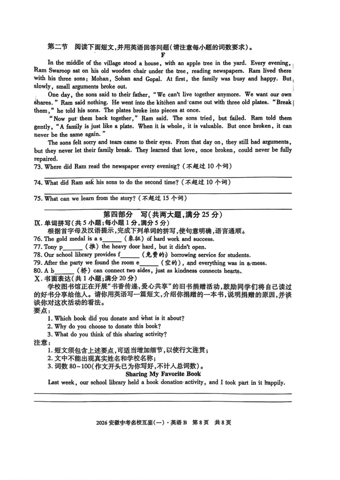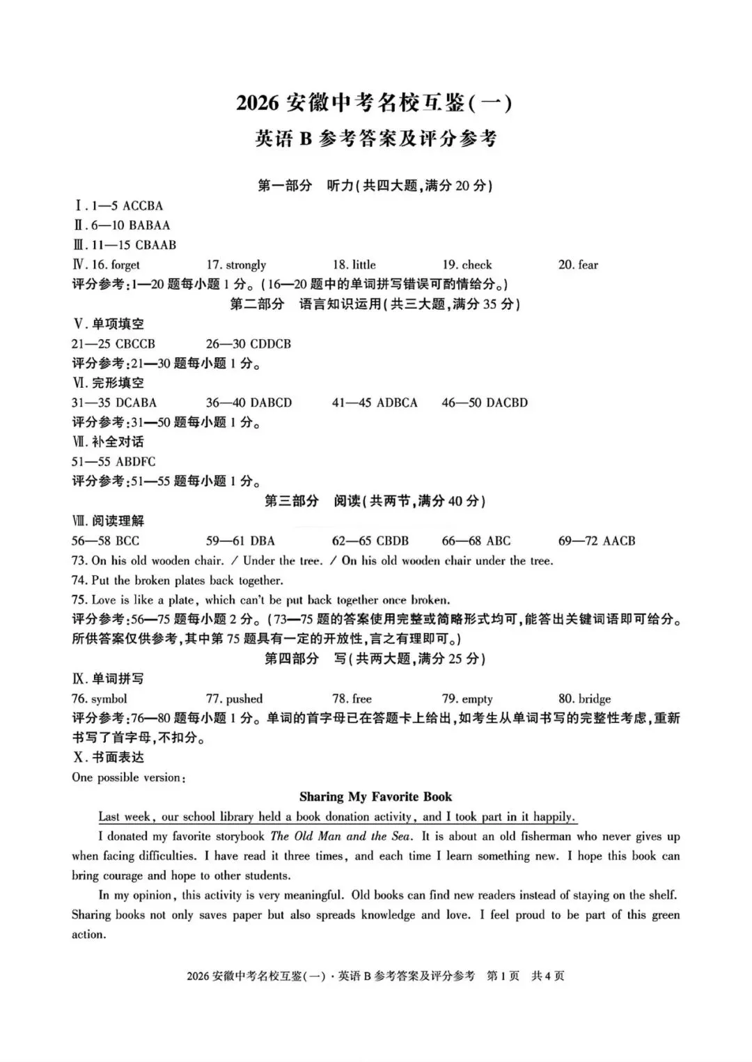 2026安徽中考名校互鉴(一)试卷B英语试卷+答案