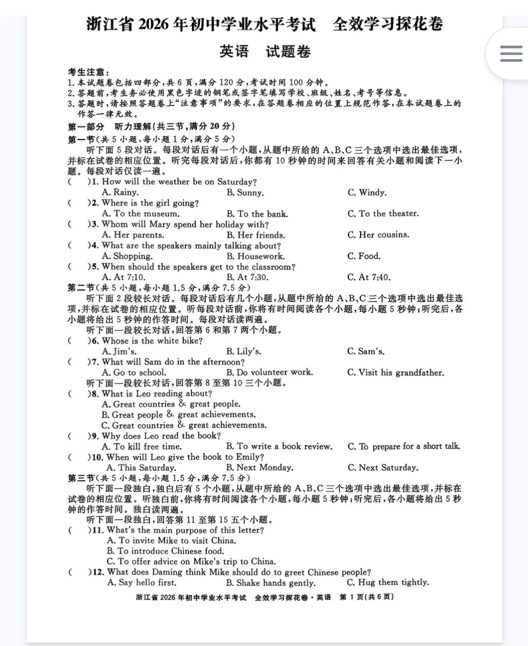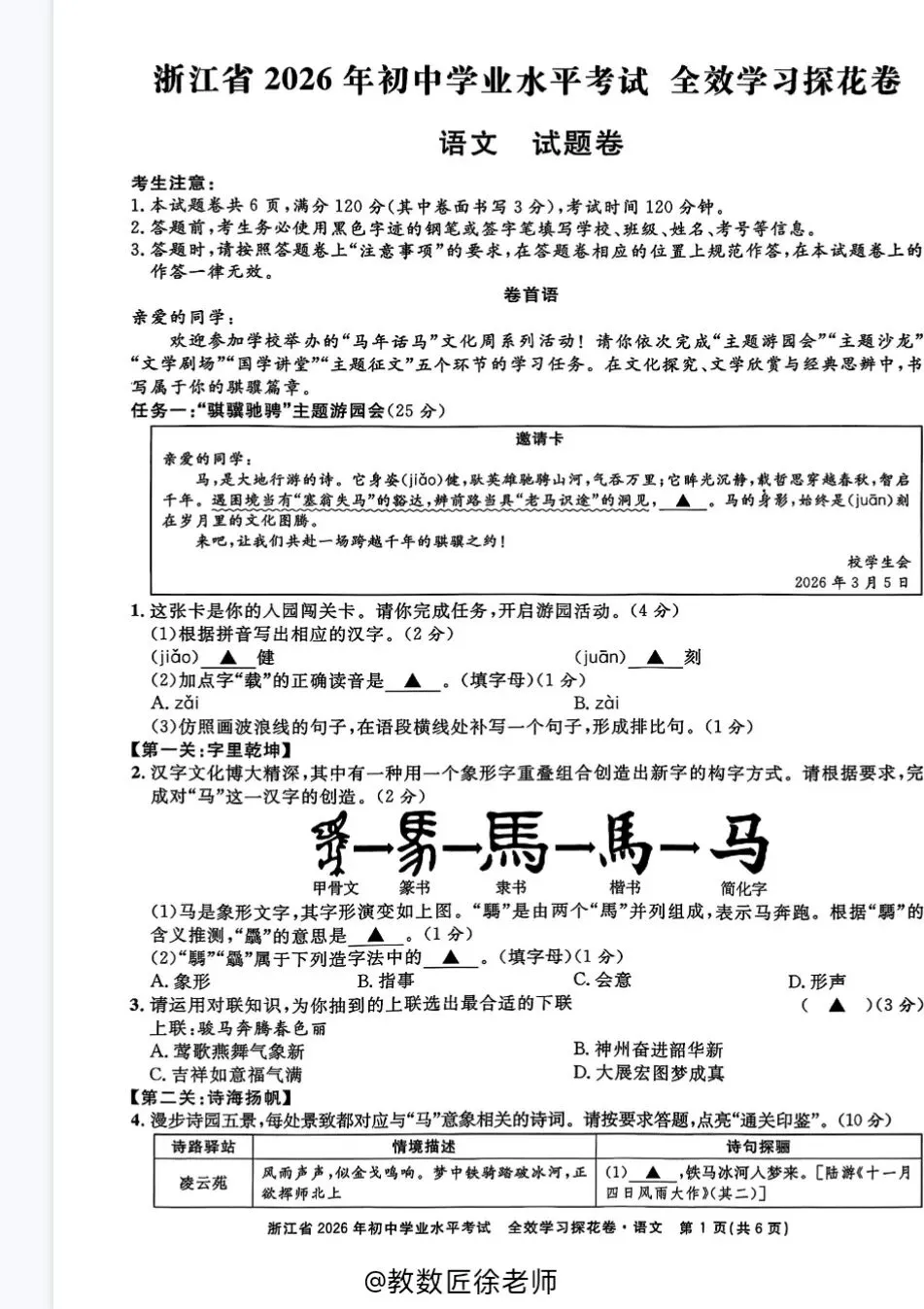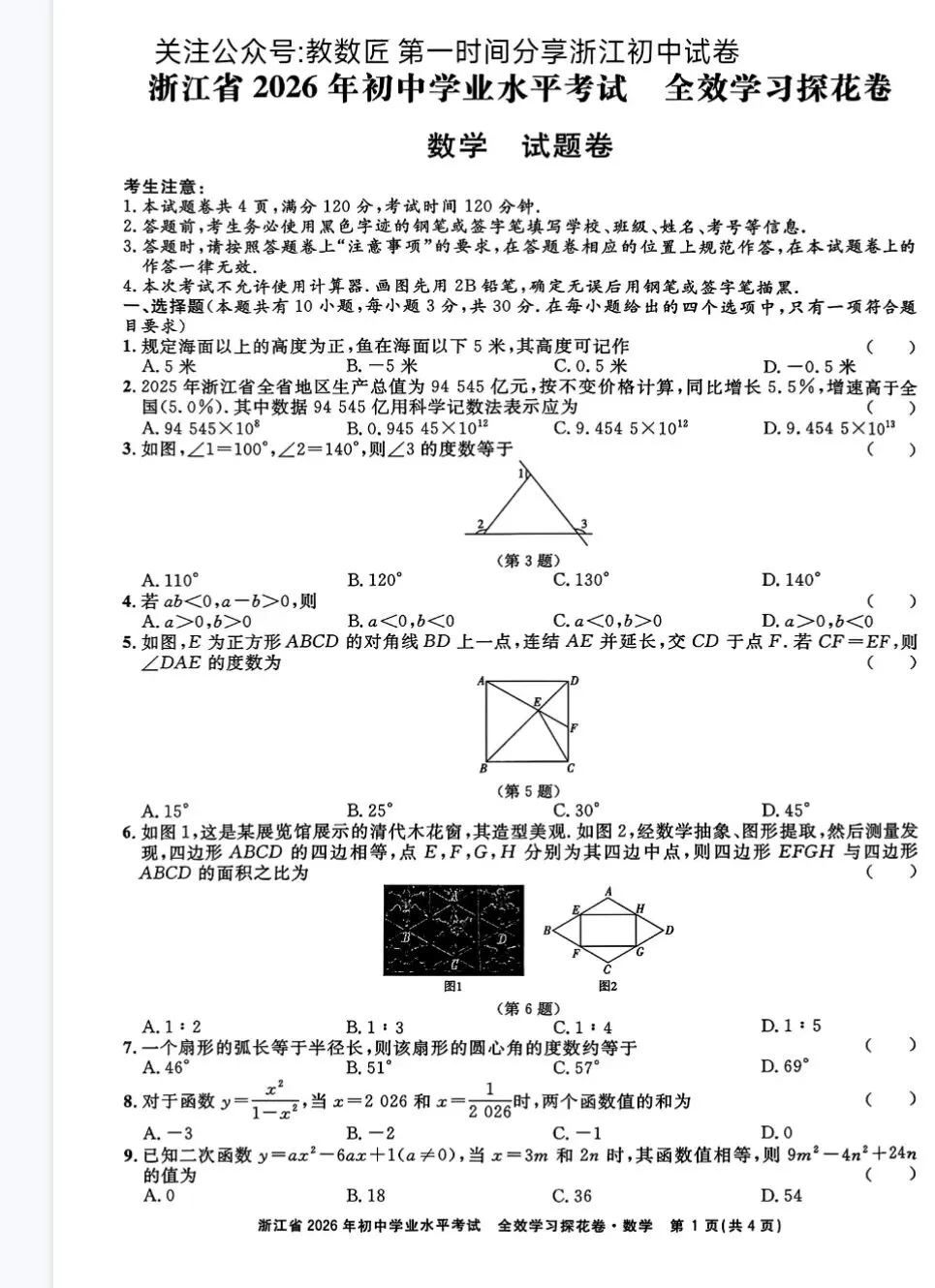 文末可下载电子版试卷—————————————————— ⏬浙江初三家长可进群⏬—————————————————— 【2026浙江中考专题提分宝典+押题卷】【语文】【数学】【英语】【科学】【社会】——————————————————公众号回复:2026中考模拟探花卷领取电子版试卷