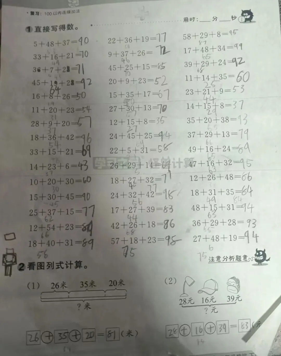 二年级数学试卷- 我让儿子找他奶奶的手机拍今天的试卷,我批改,看到全对的答案,到了嘴边的训斥又咽了回去。