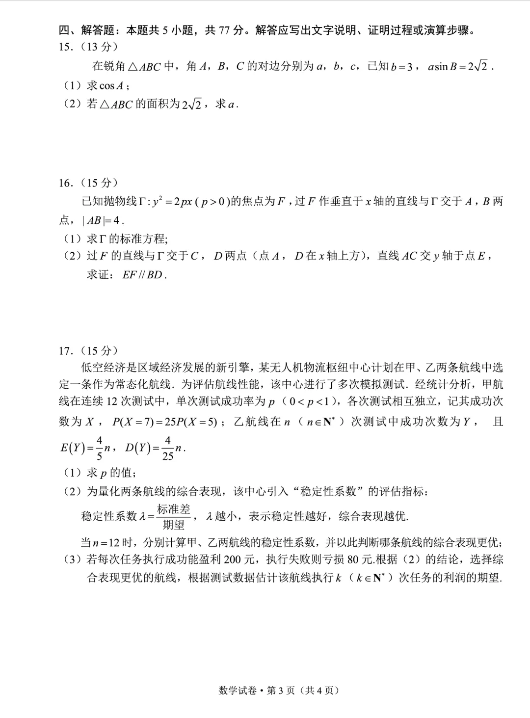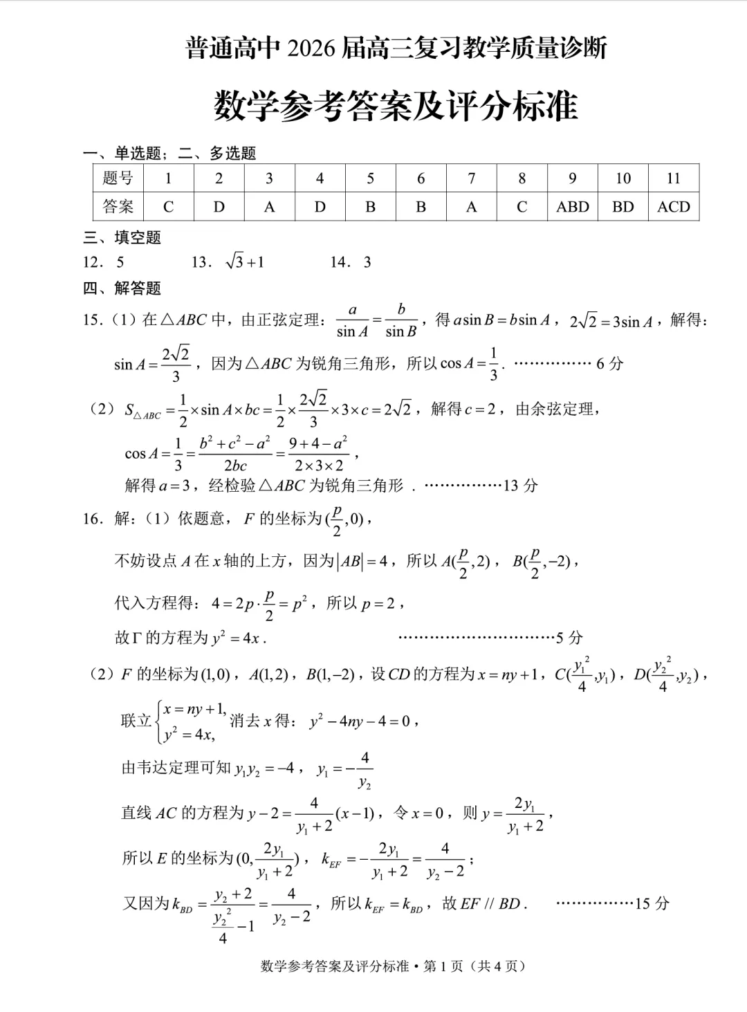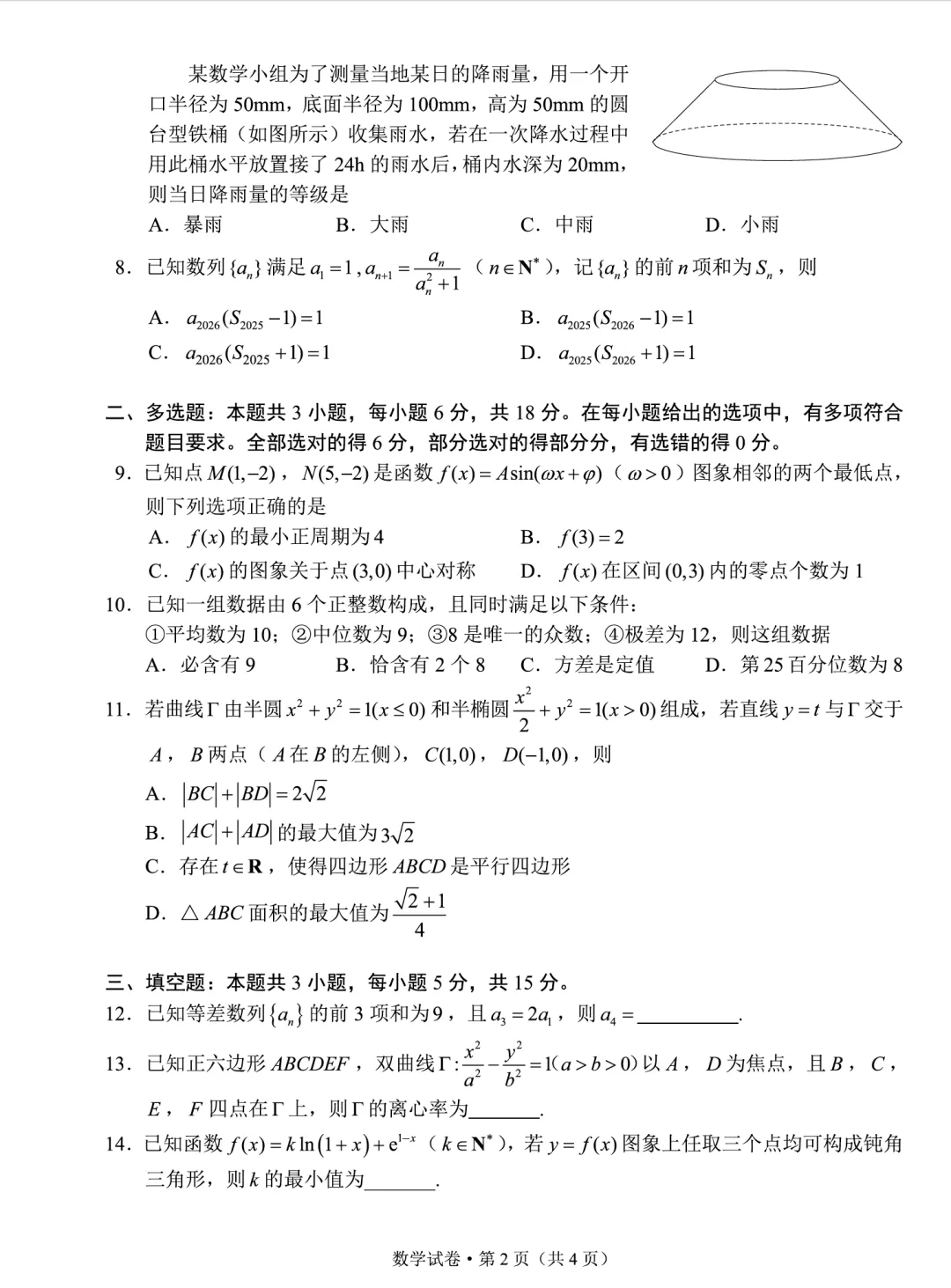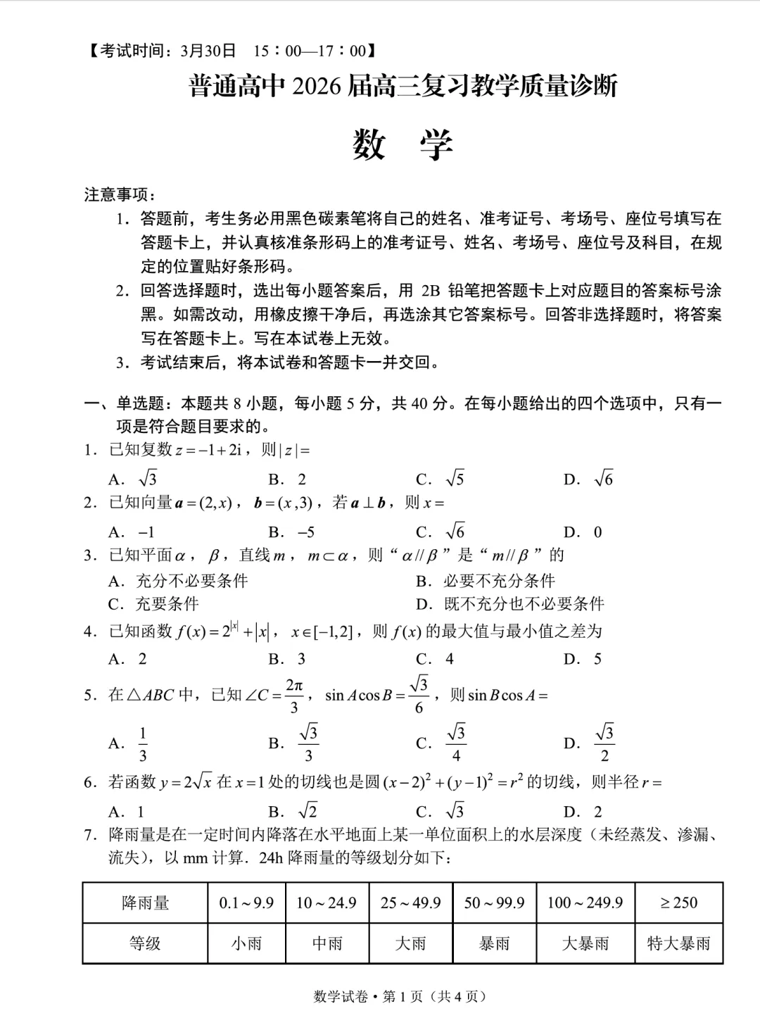 2026年3月30日:昆明市2026届高三市统测(二)数学试卷及答案