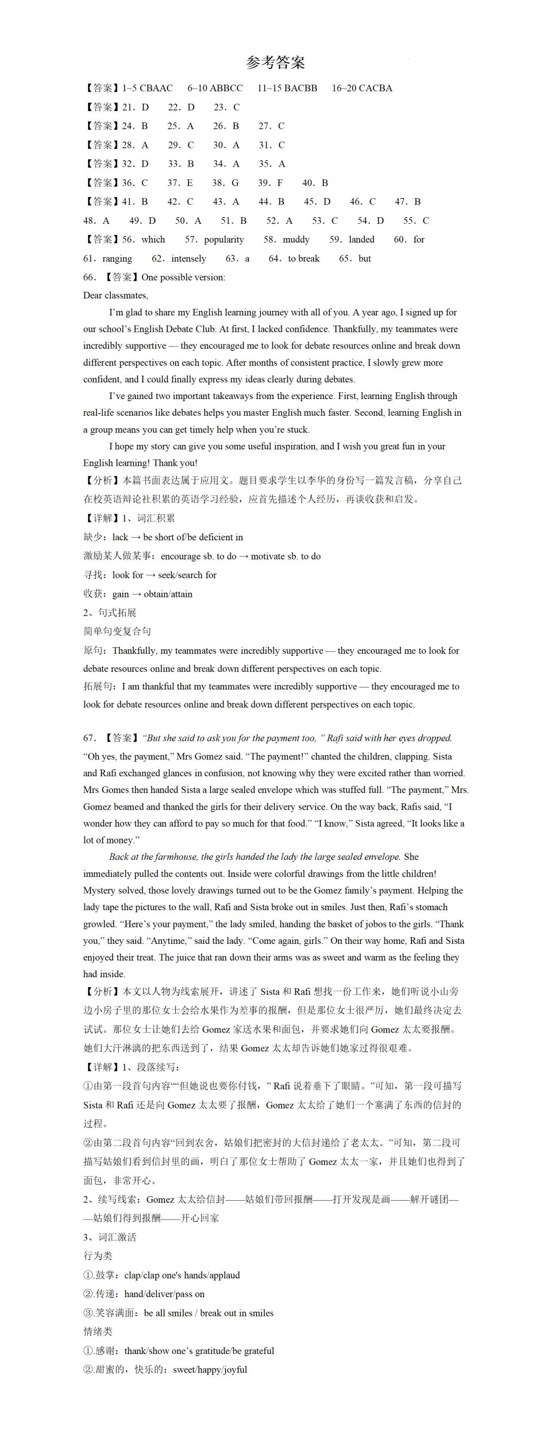 66.假定你是李华,你加入学校英语辩论社一年来,英语进步很大。请你写一篇发言稿,在班级英语学习经验交流会上分享,内容包括:(1)你的经历;(2)你的收获和启发。