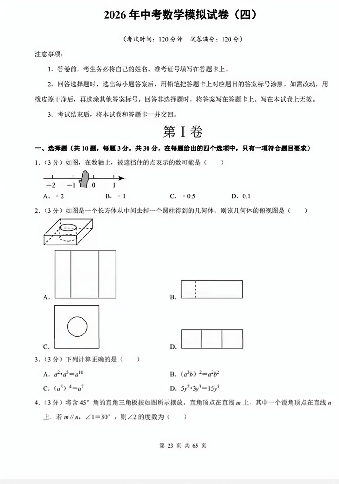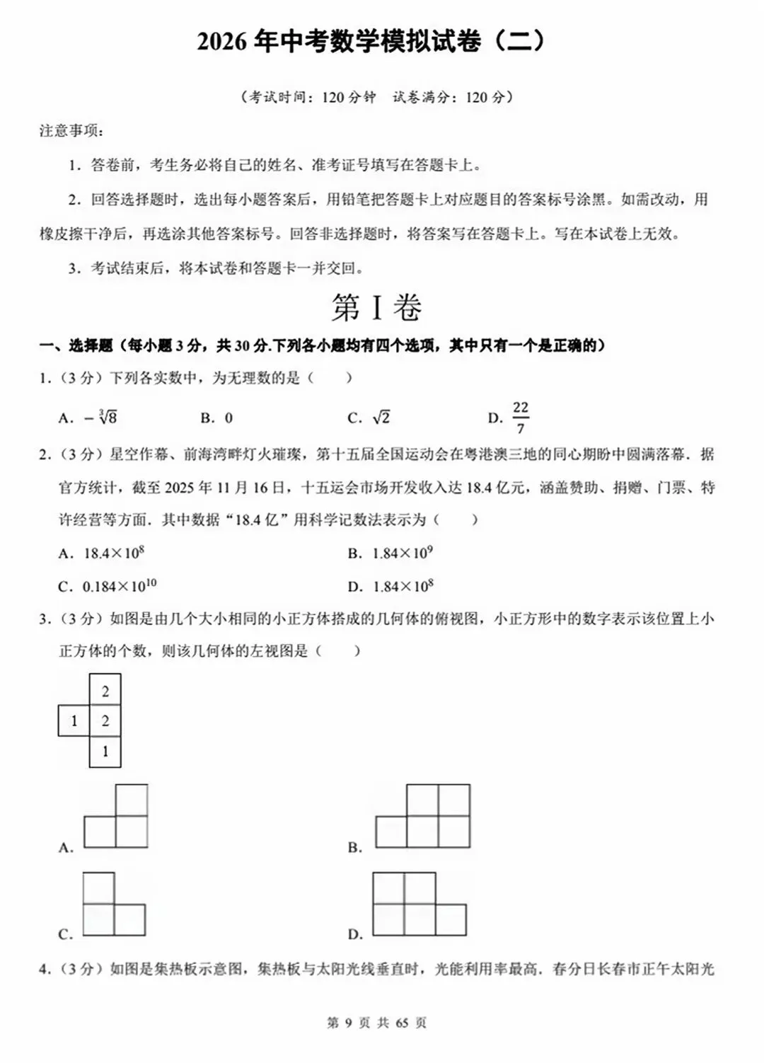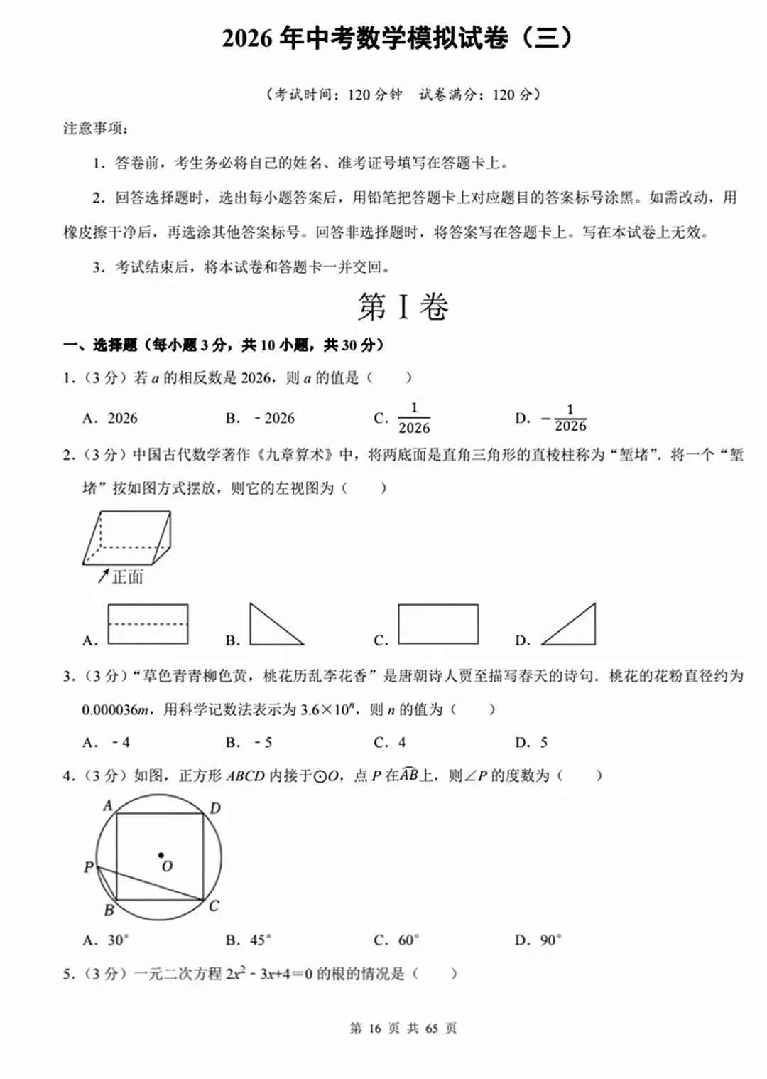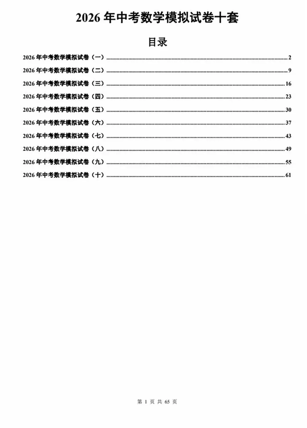 今天跟大家分享的是:2026年中考数学模拟试卷(10套word版)