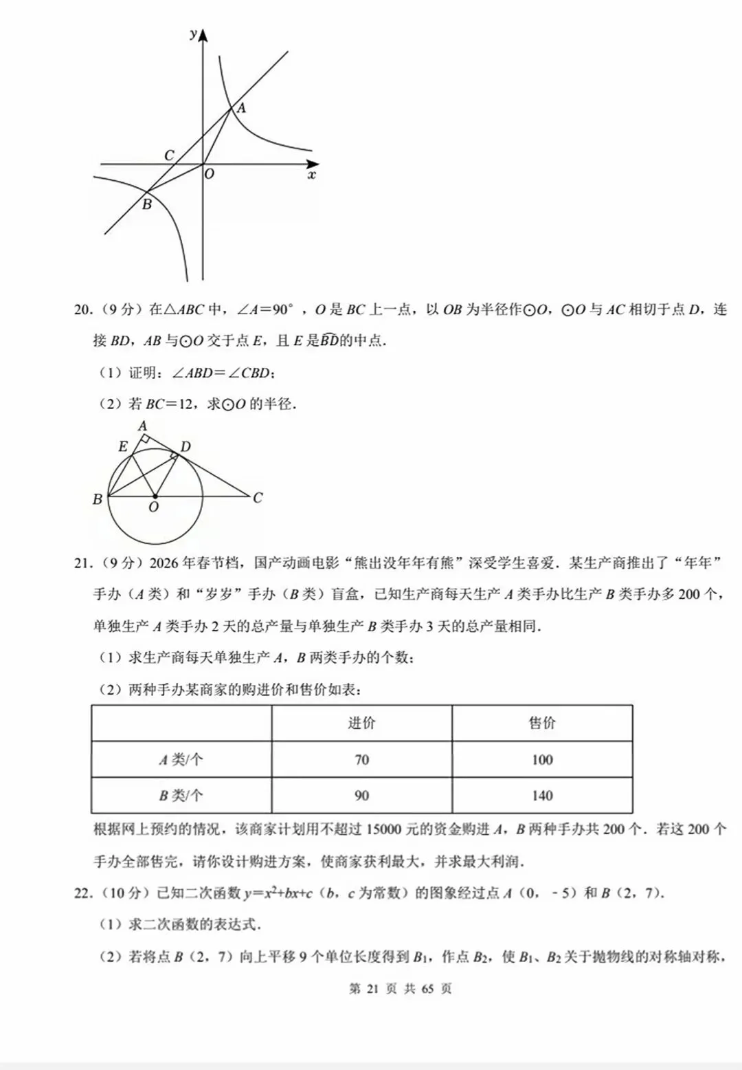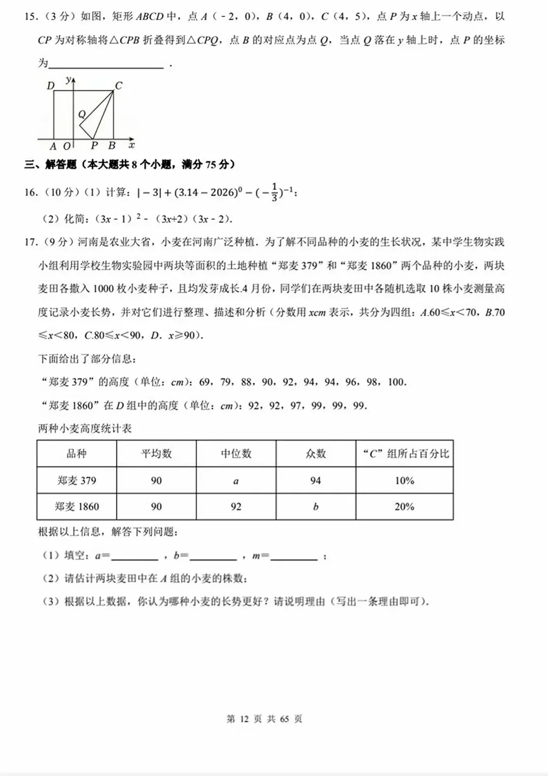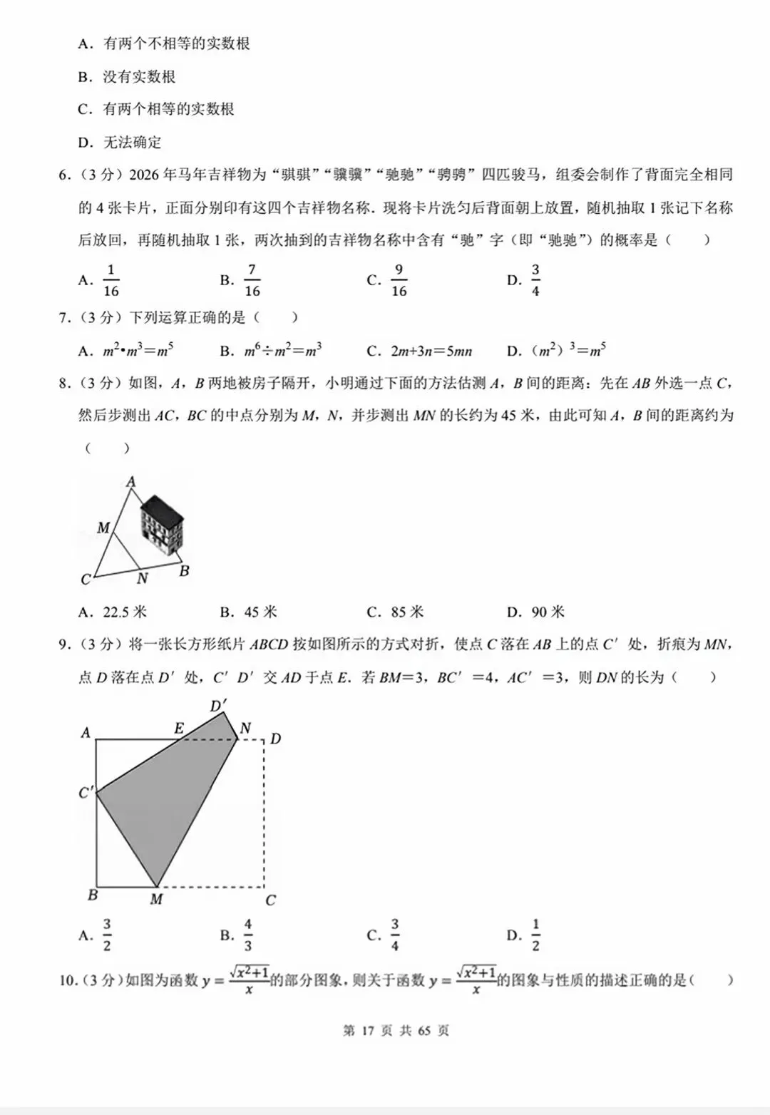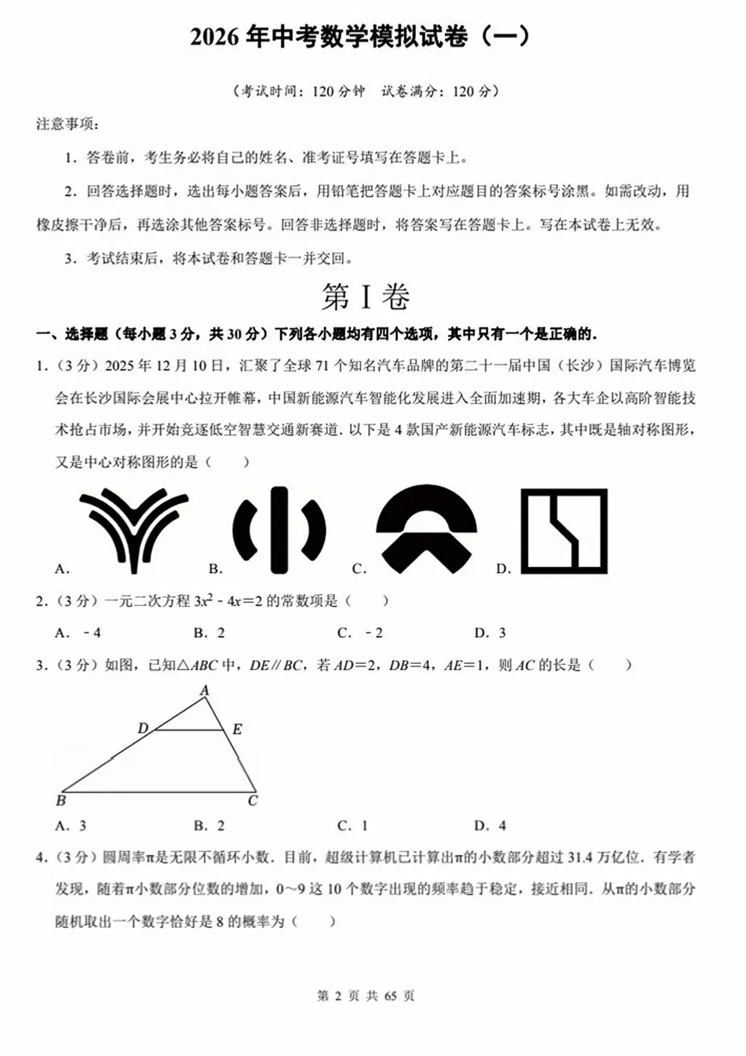 今天跟大家分享的是:2026年中考数学模拟试卷(10套word版)