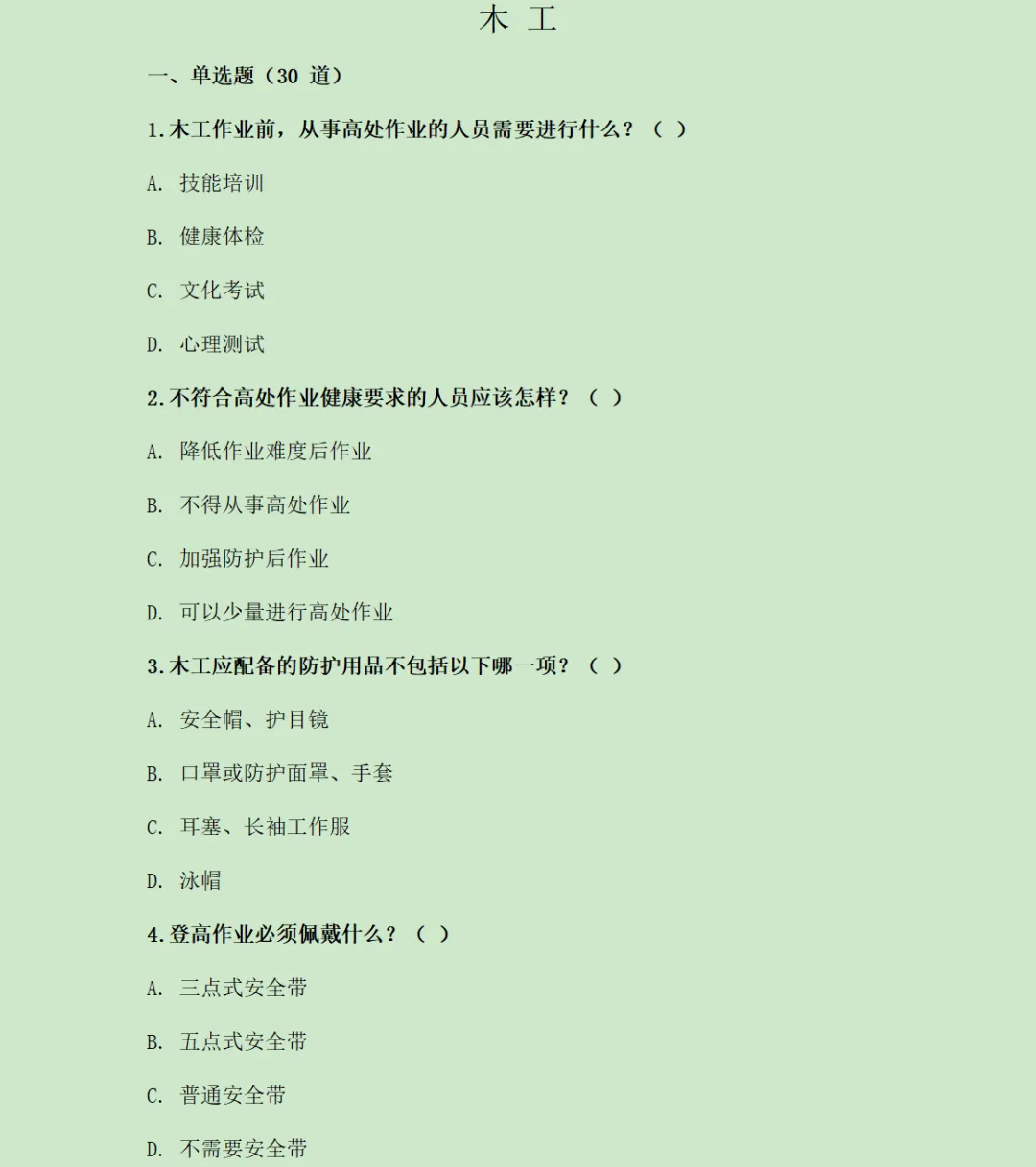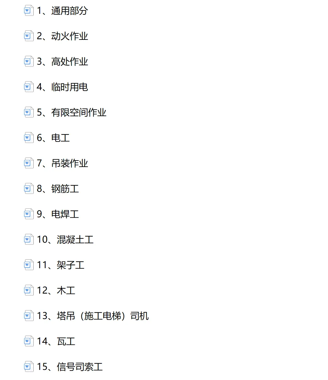 >7、安全教育— 15个工种安全教育试卷(含答案)