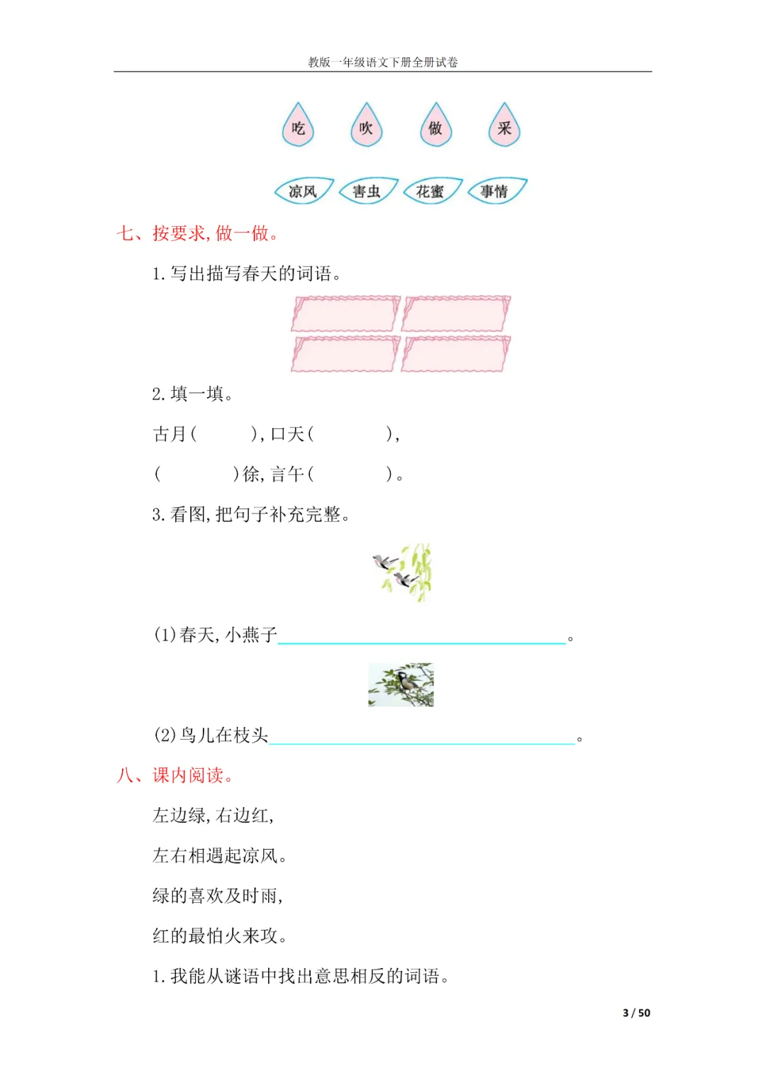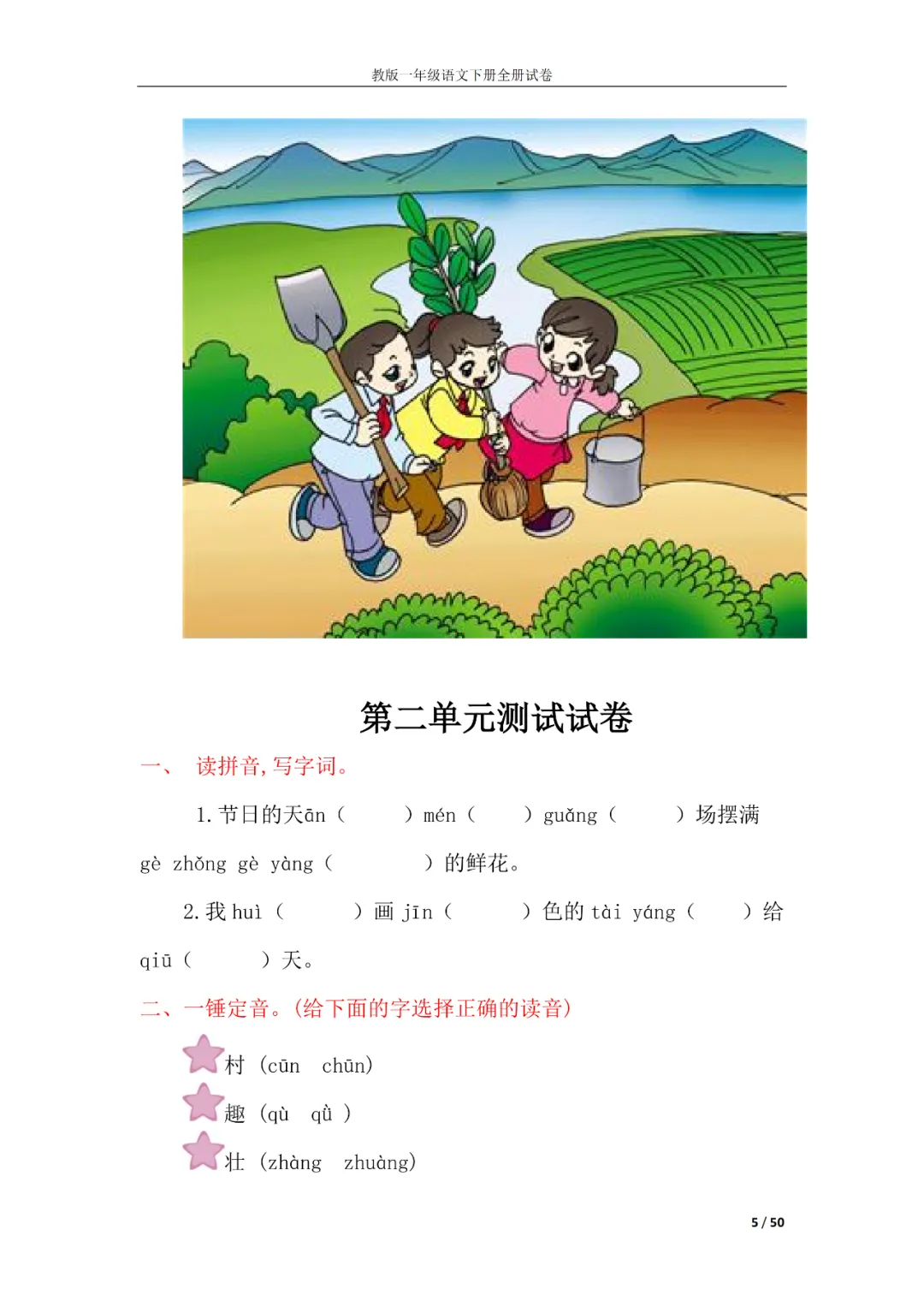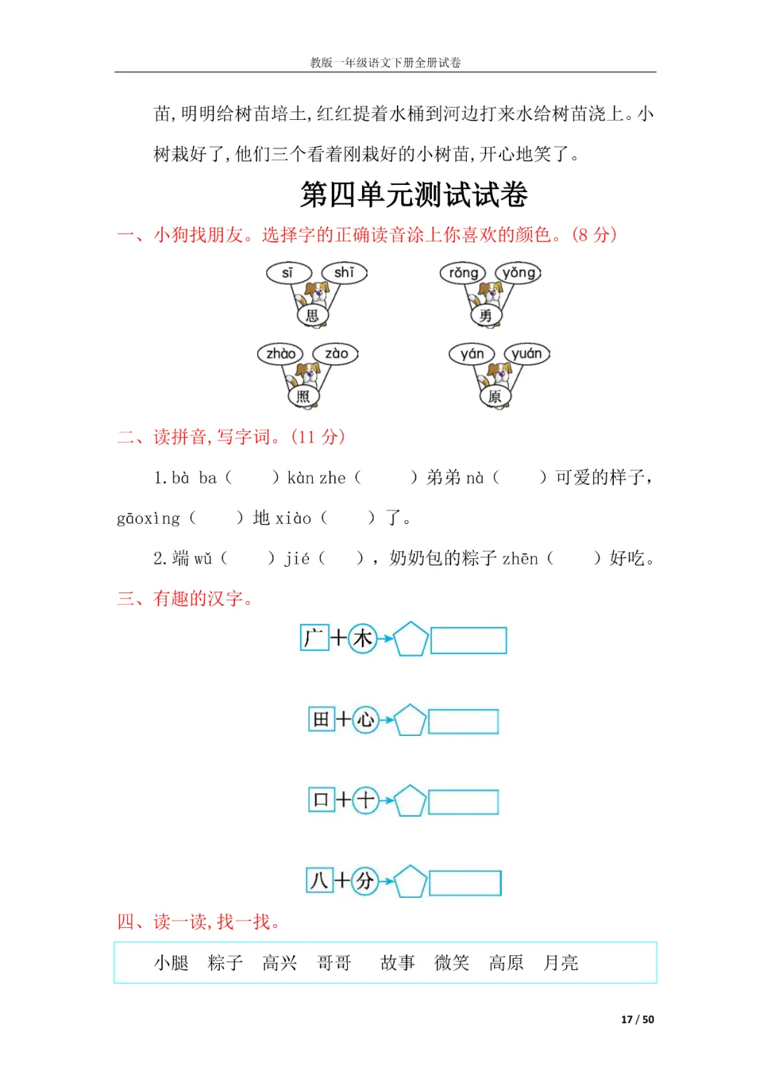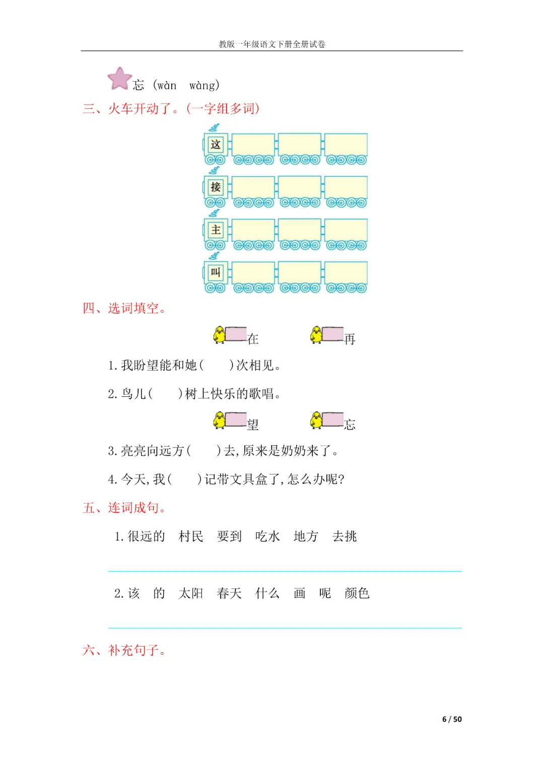 一年级语文下册全册试卷