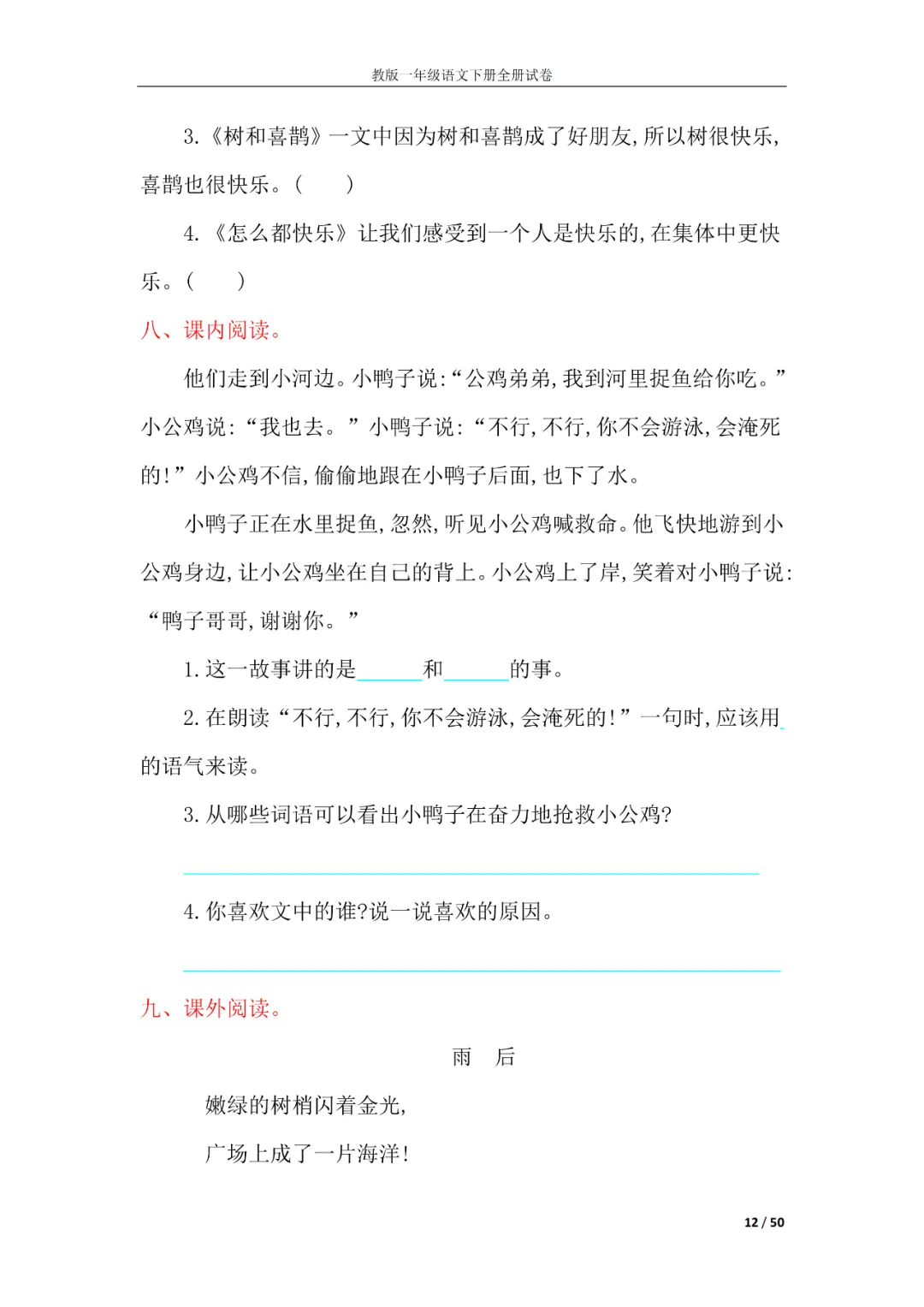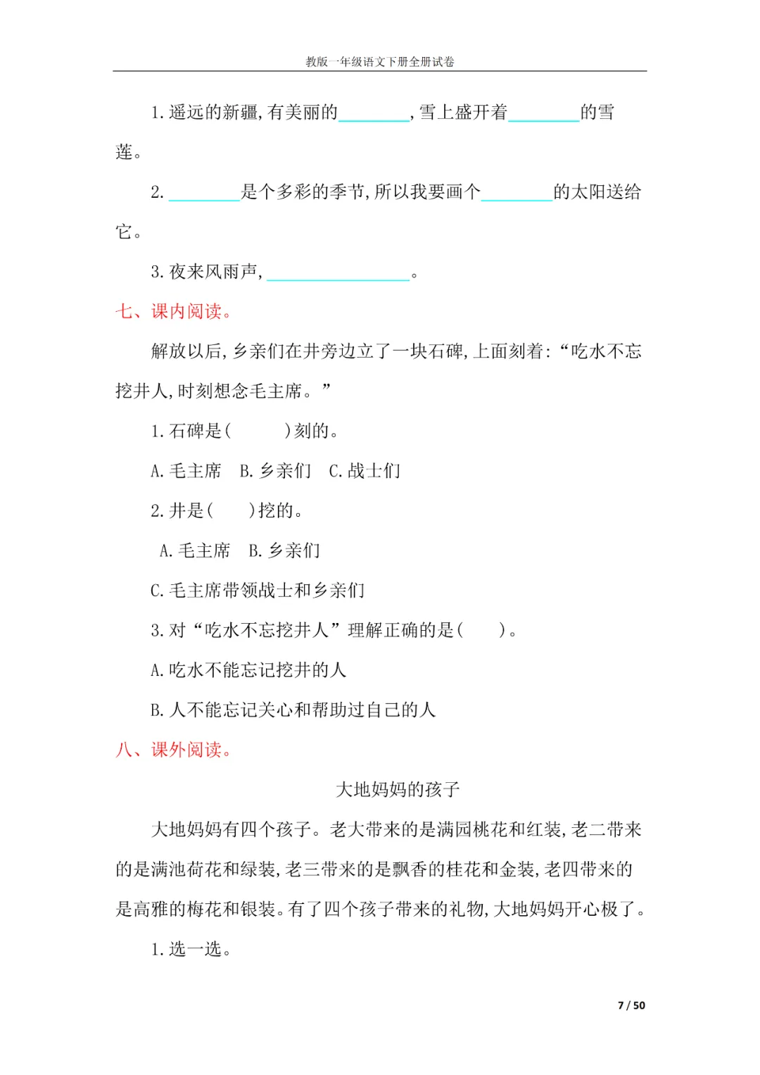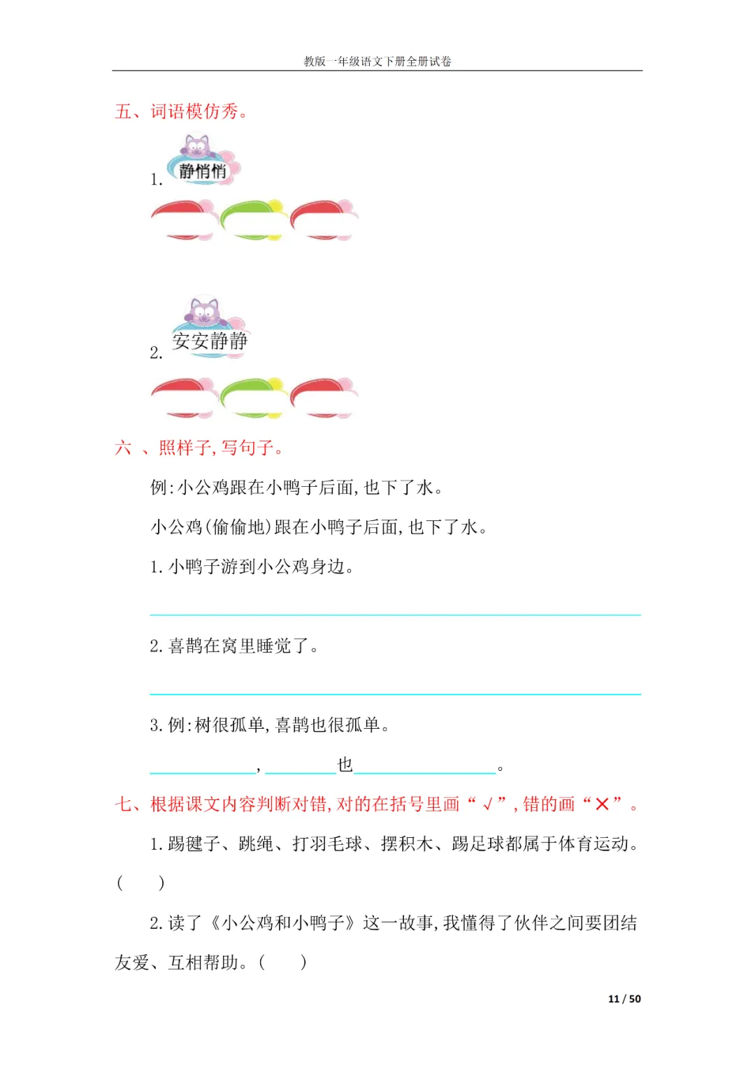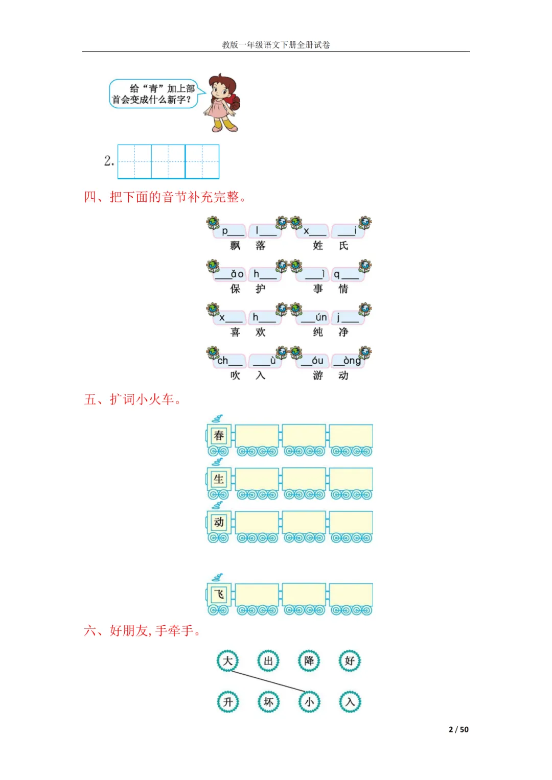 一年级语文下册全册试卷