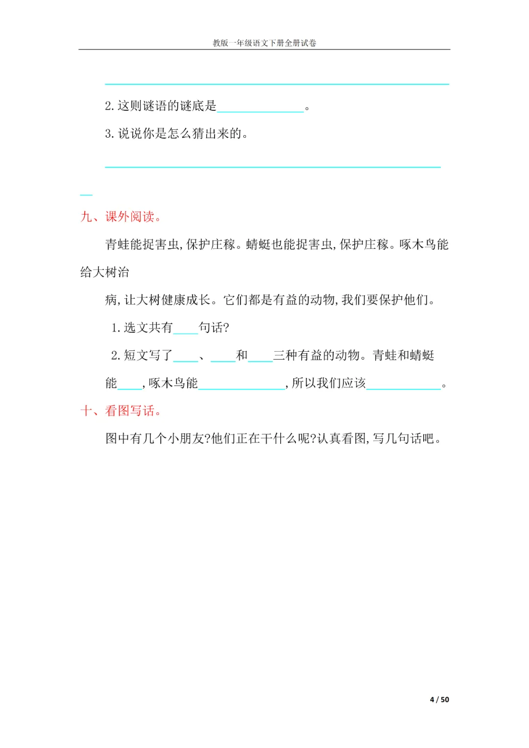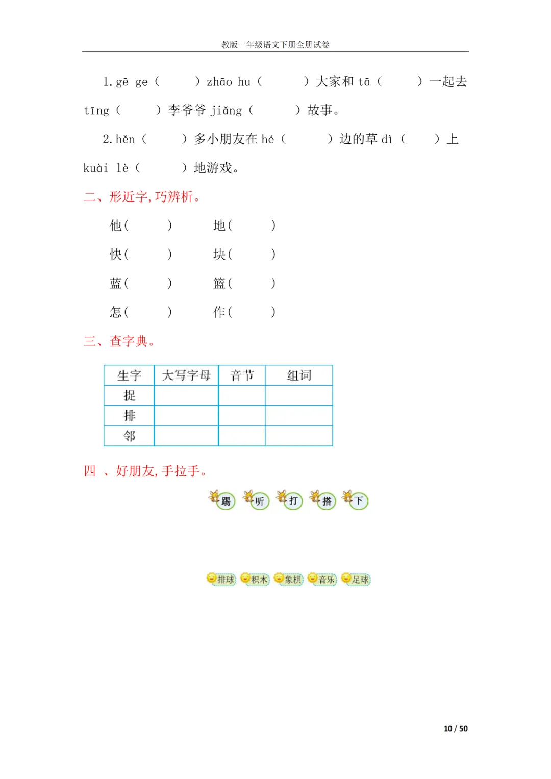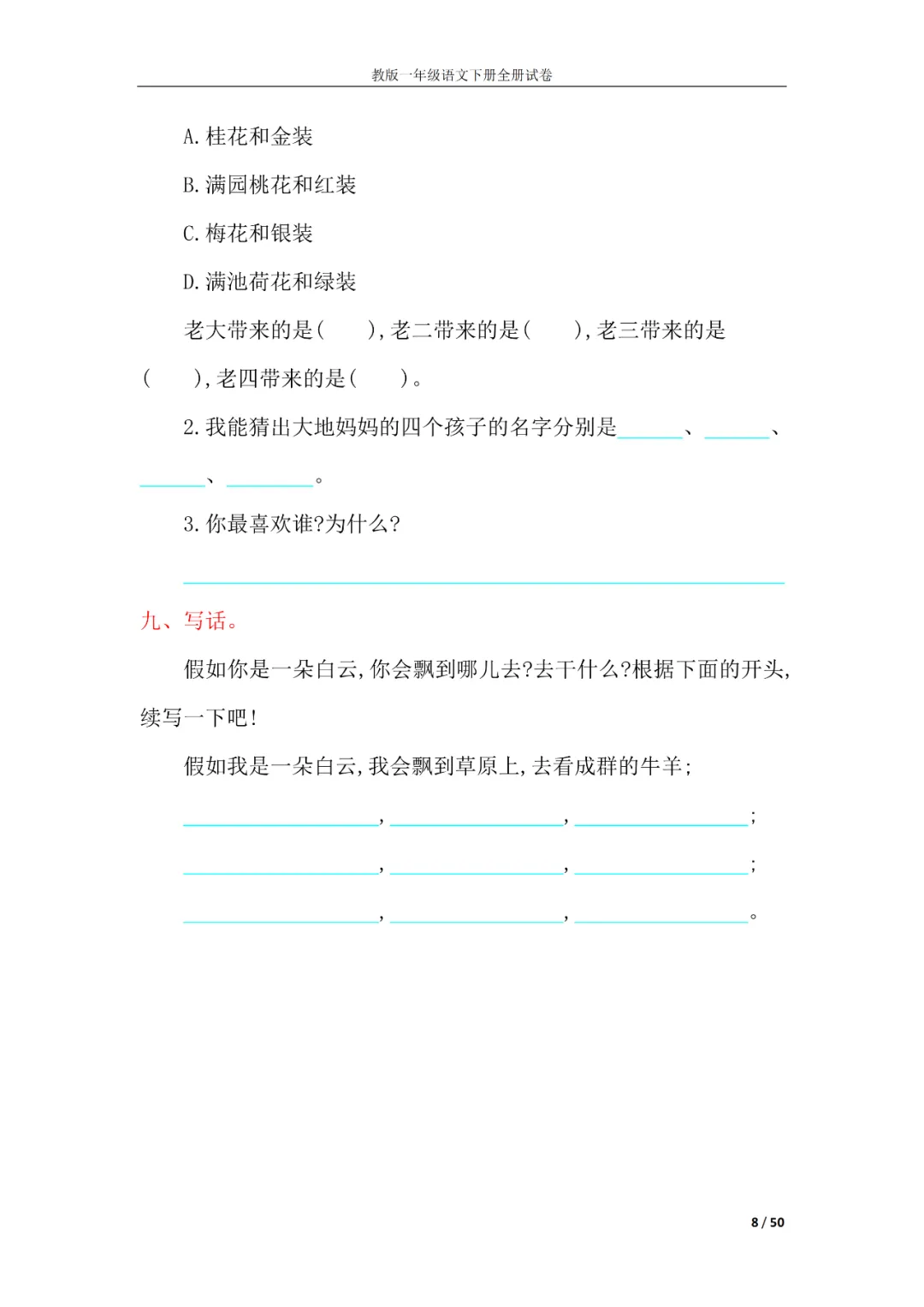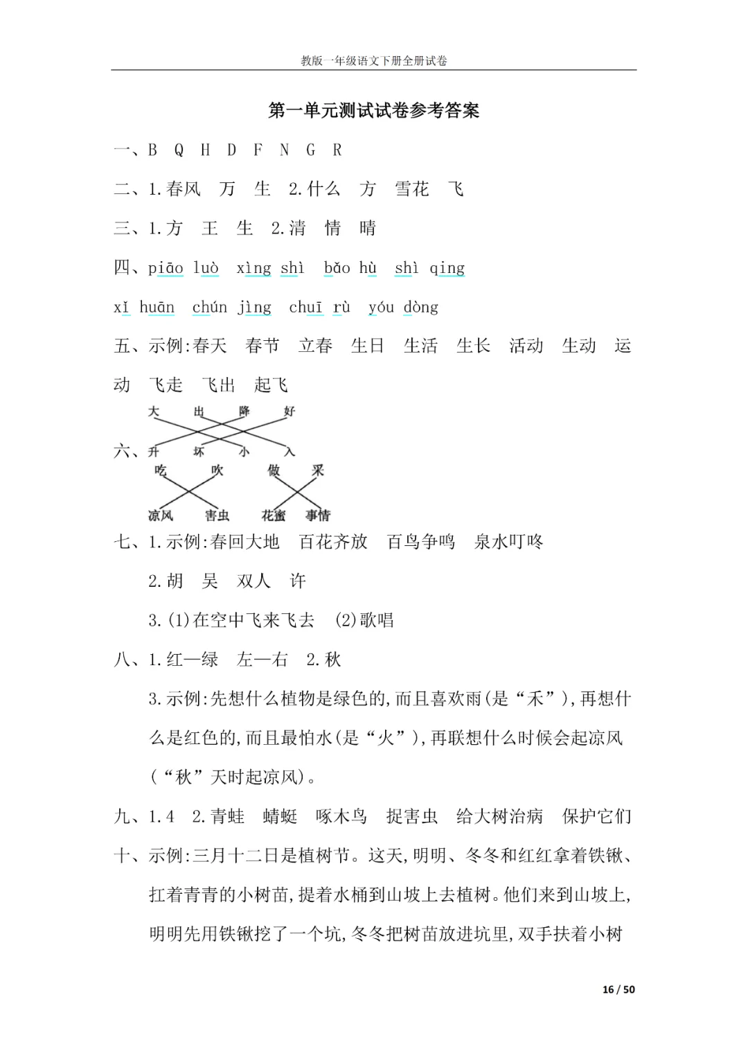 一年级语文下册全册试卷