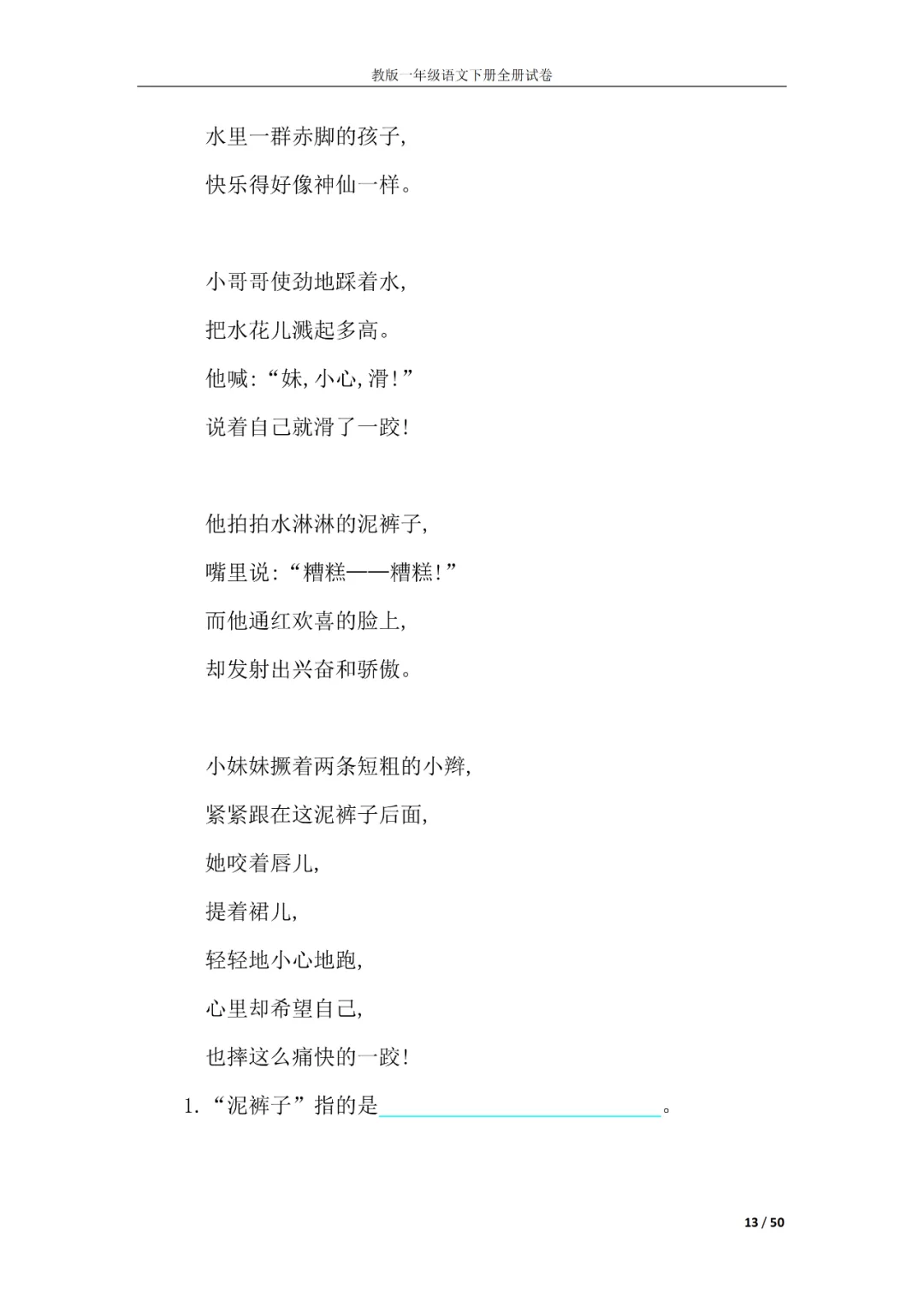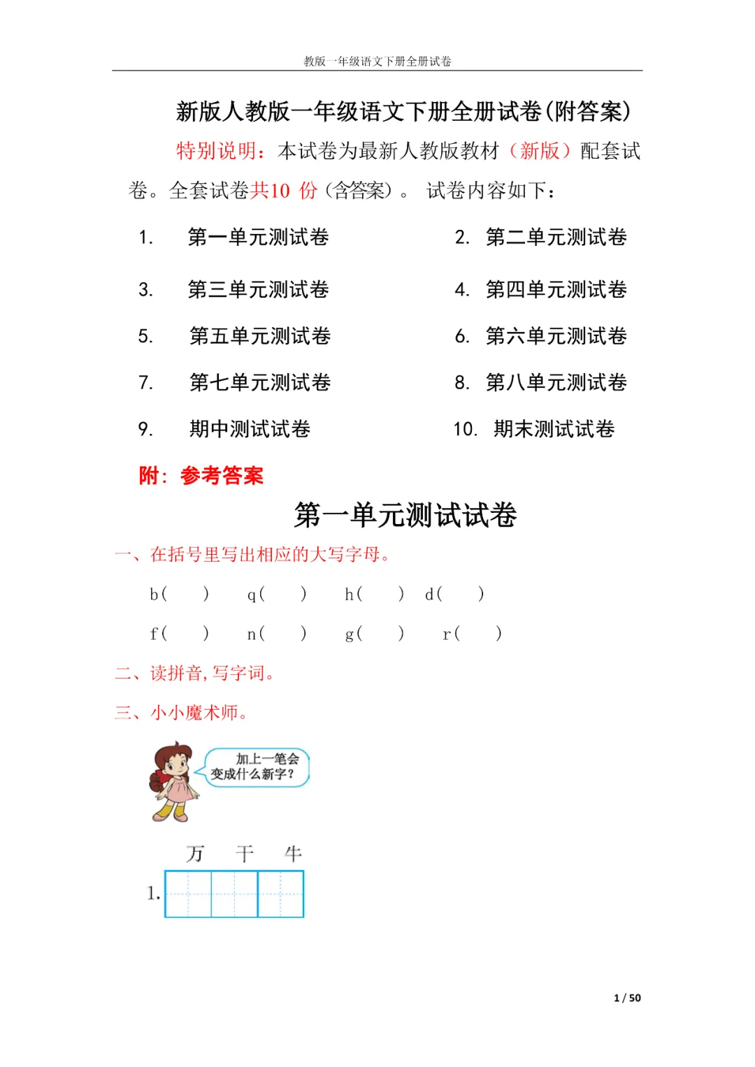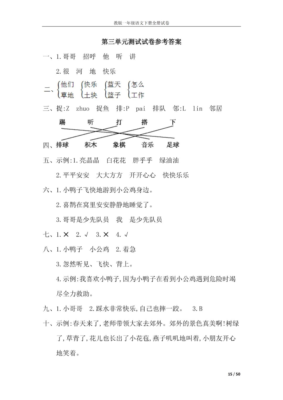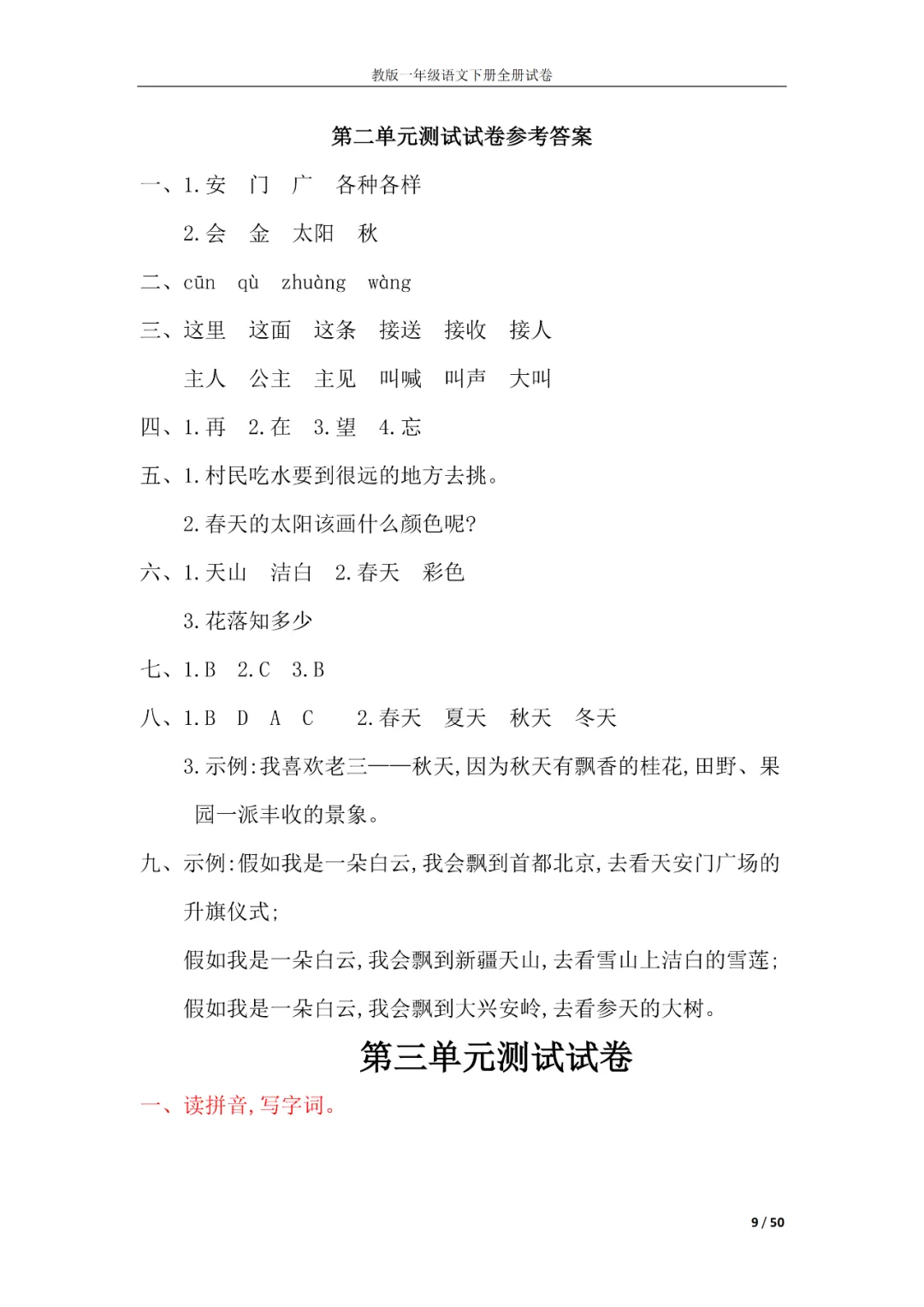一年级语文下册全册试卷