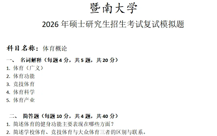 当前位置:首页>考研真题>暨南大学体育概论考研复试真题模拟
