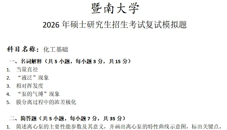 当前位置:首页>考研真题>暨南大学化工基础考研复试真题模拟