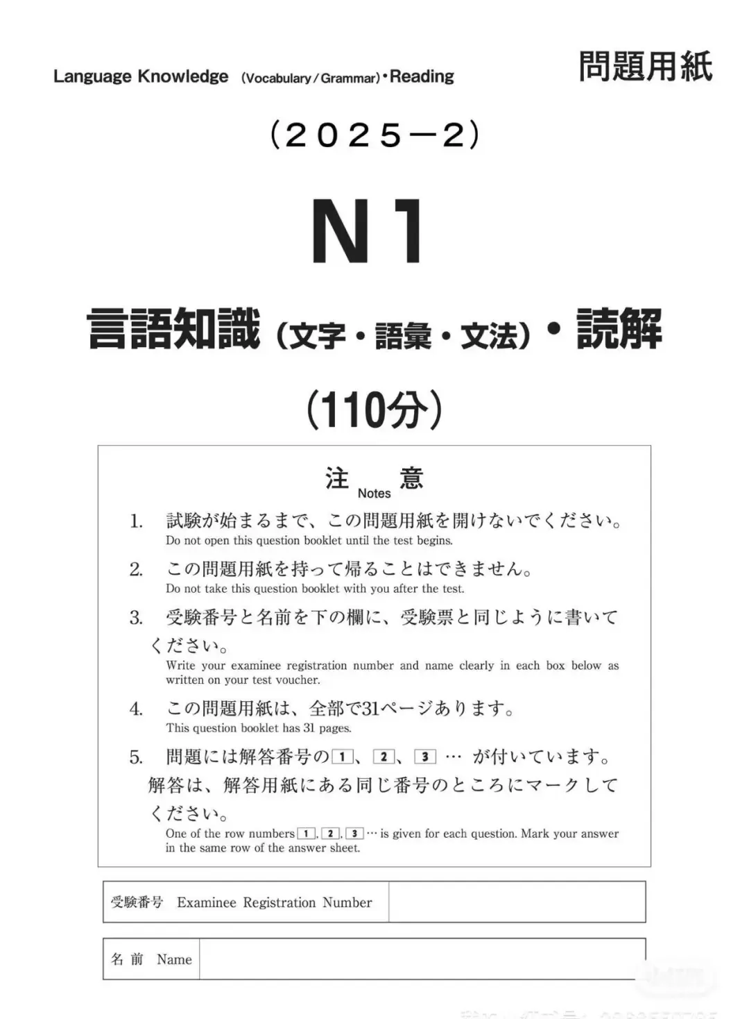 准备参加JLPT日语能力考试的同学们,大家准备好了吗?今天给大家整理了25年12月N1真题及参考答案,供大家学习参考~