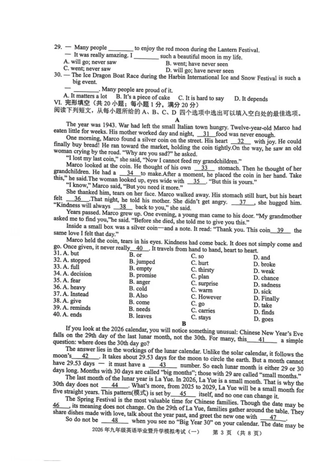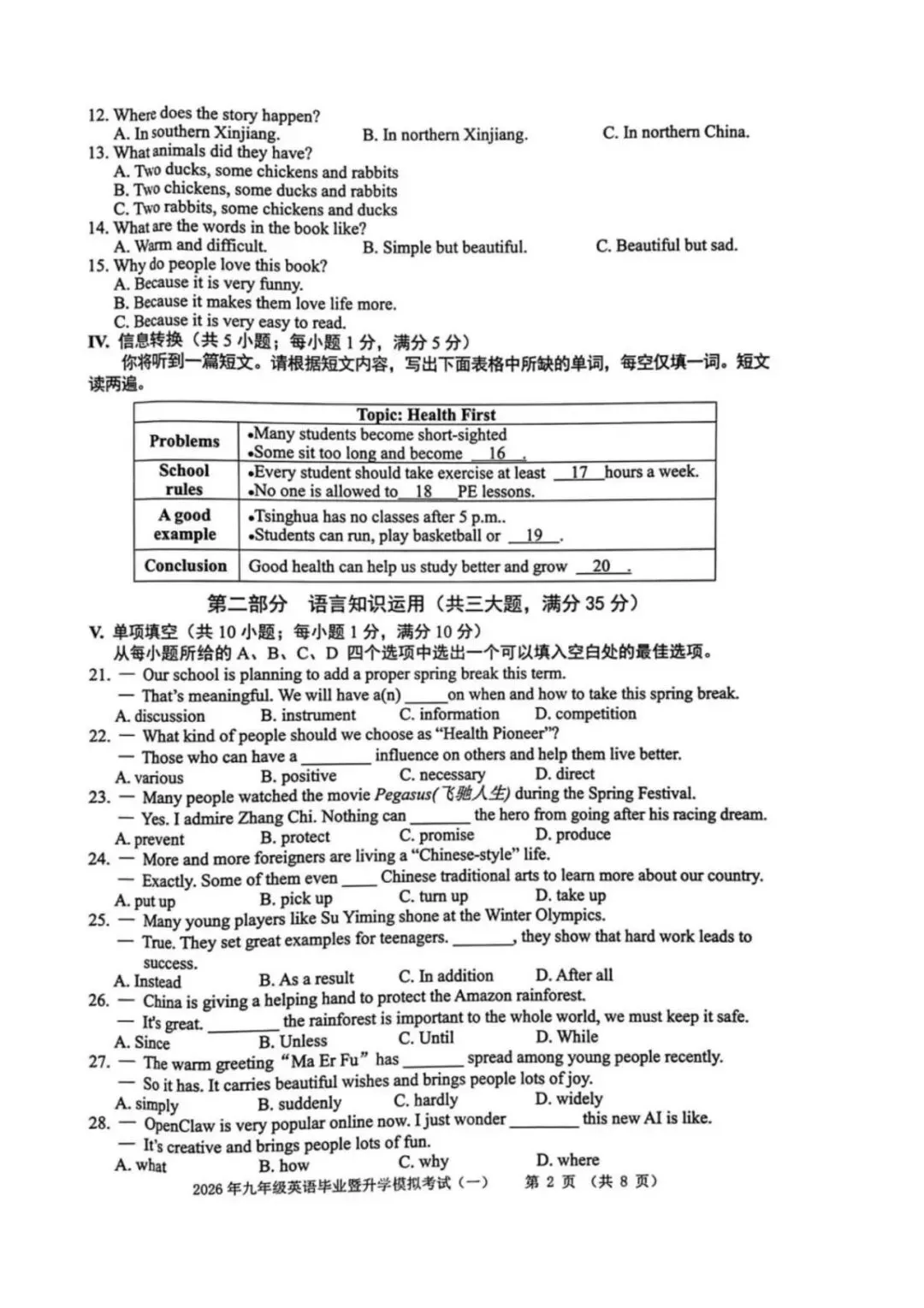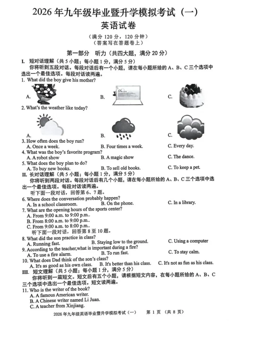 ●上海市2026届宝山区初三一模英语试题和答案解析(附听力音频+听力文稿)