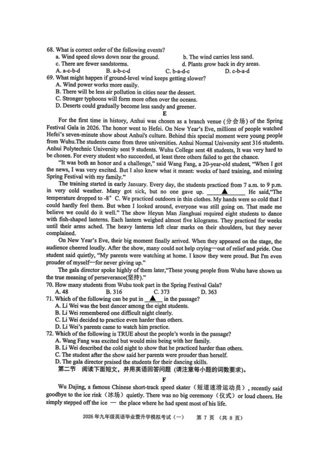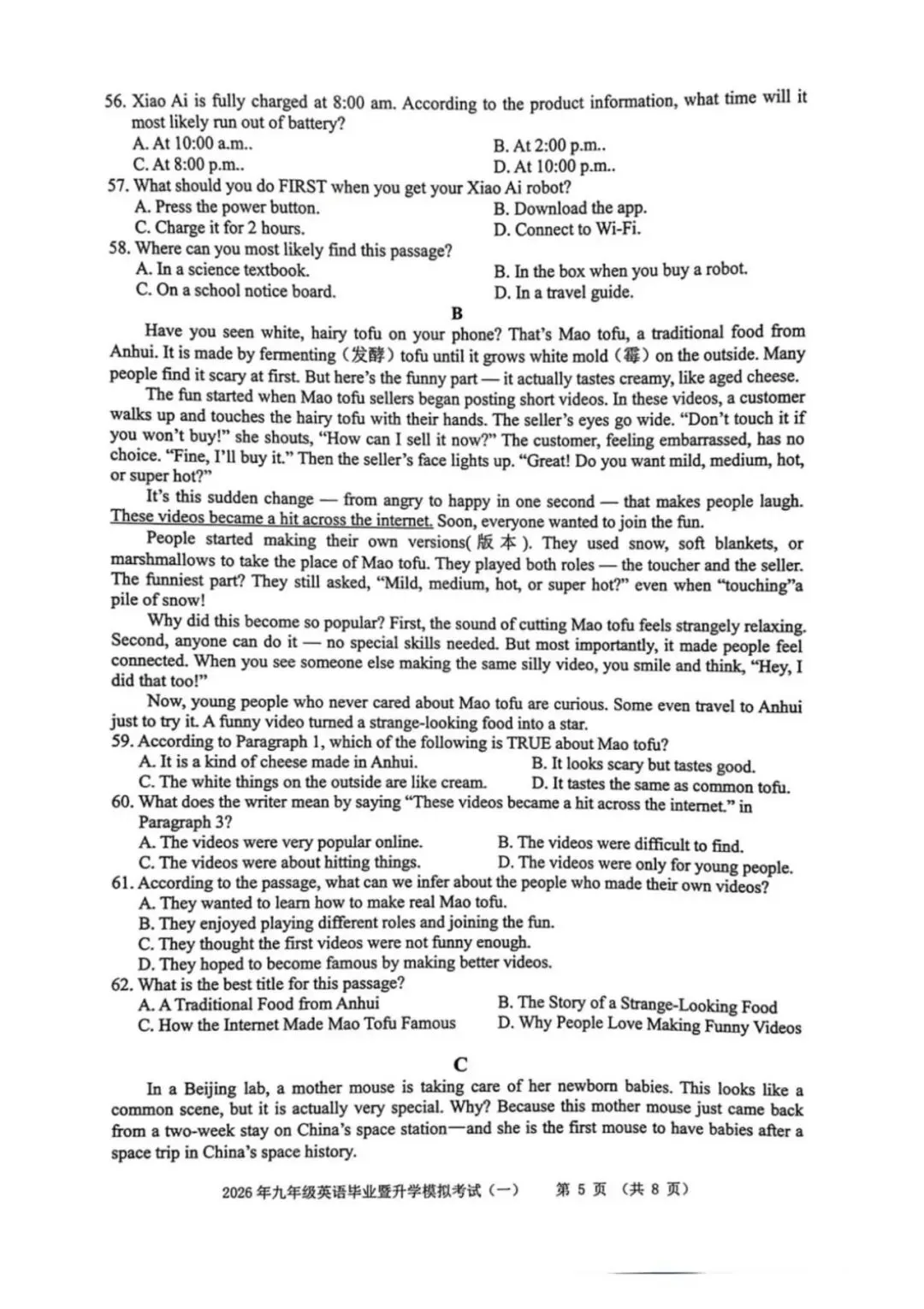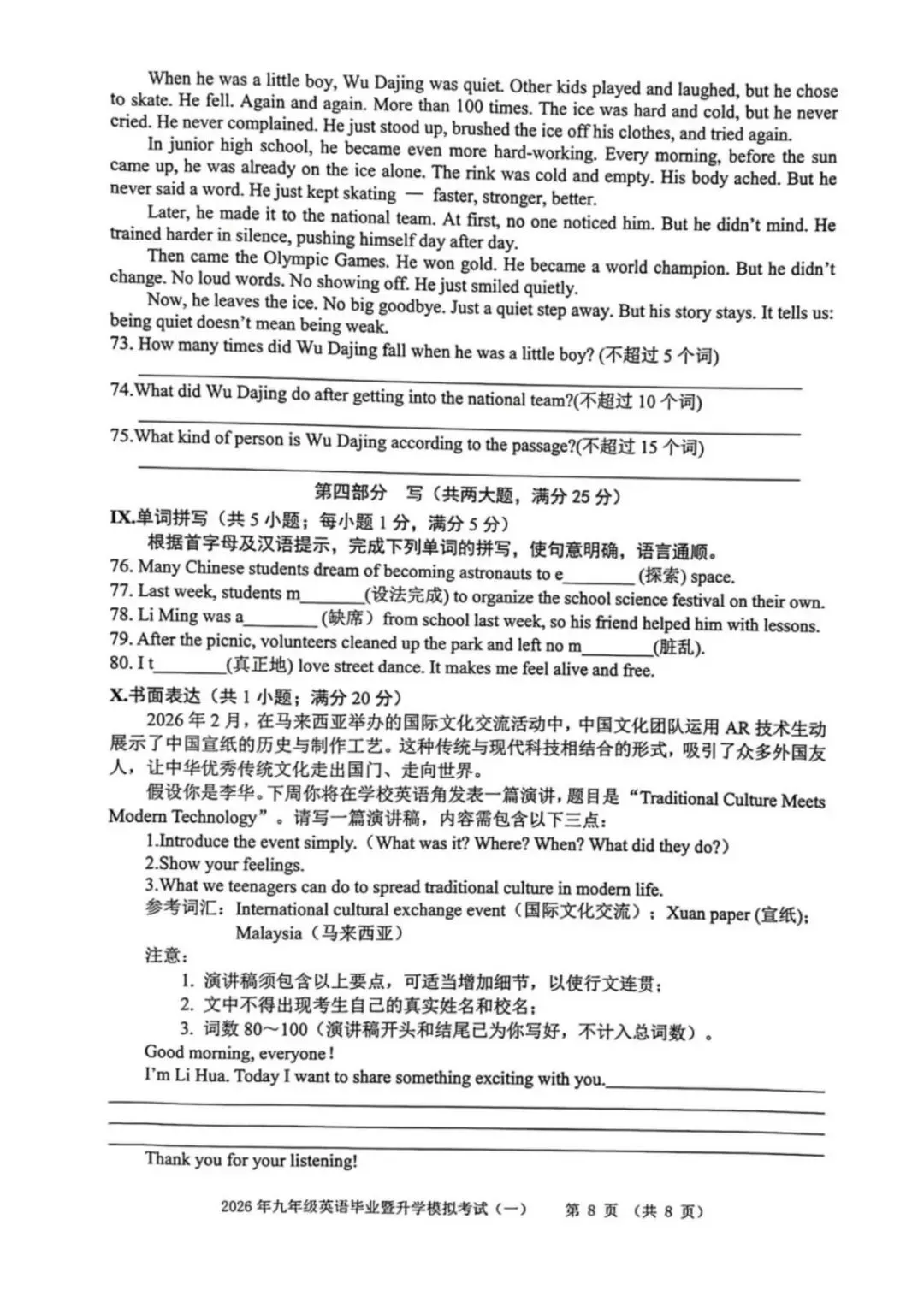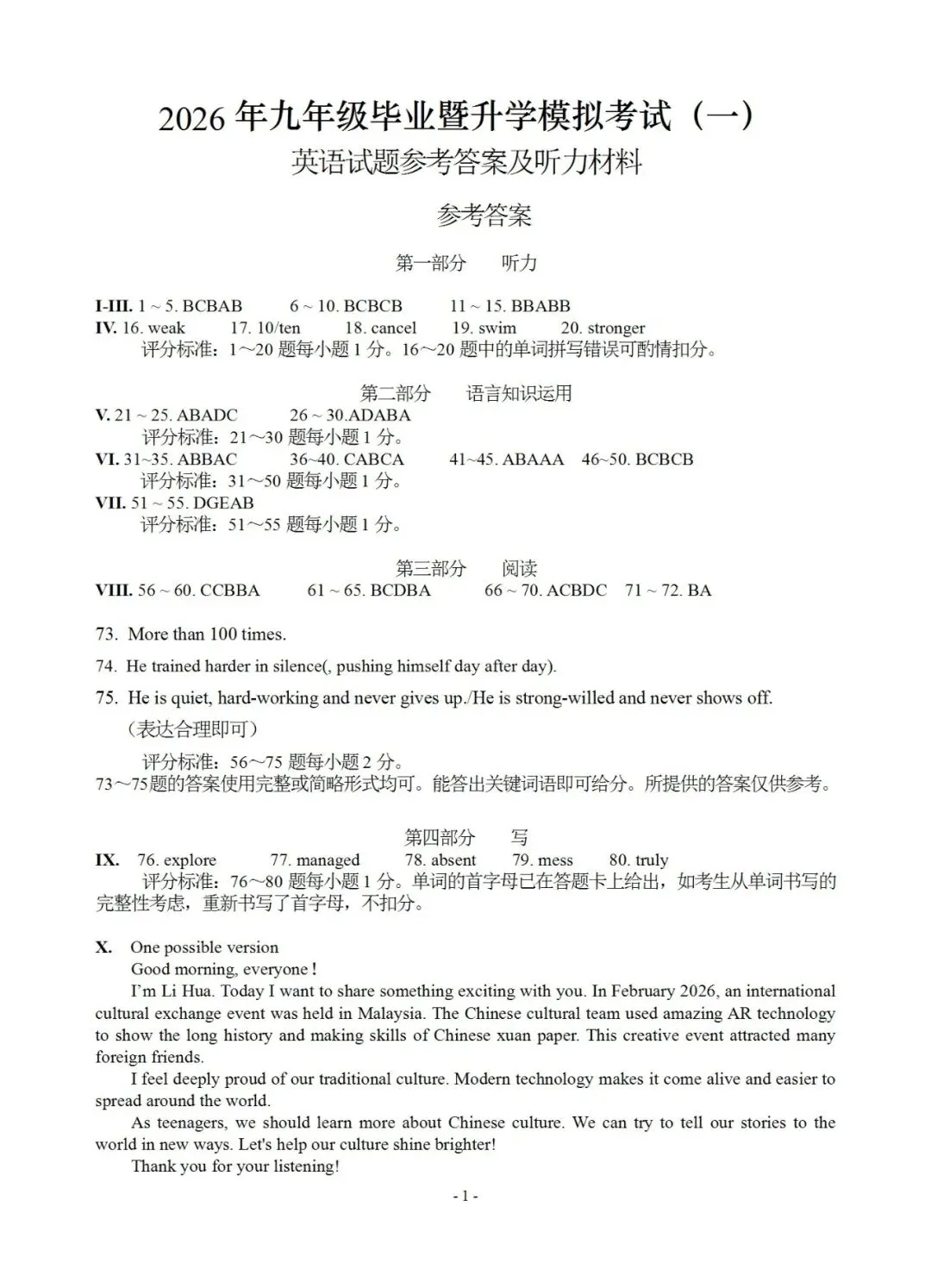 ●上海市2026届宝山区初三一模英语试题和答案解析(附听力音频+听力文稿)