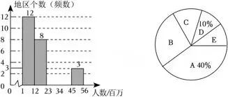 21.(8分)2023年,国内文化和旅游行业复苏势头强劲.某社团对30个地区“五一”假期的出游人数进行了调查,获得了它们“五一”假期出游人数(出游人数用m表示,单位:百万)的数据,并对数据进行统计整理.数据分成5组:A组:1≤m<12;B组:12≤m<23;C组:23≤m<34;D组:34≤m<45;E组:45≤m<56.下面给出了部分信息: