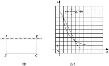 如图2,反比例函数y(x>0)的图象与直线l1:y=﹣2x+10的交点坐标为(1,8)和,因此,木栏总长为10m时,能围出矩形地块,分别为:AB=1m,BC=8m;或AB=m,BC=m.