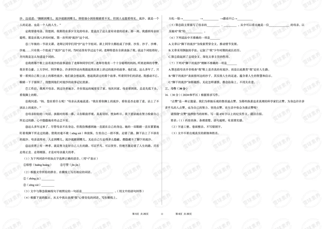 20260330长安区中考一模语文试卷及作文例文
