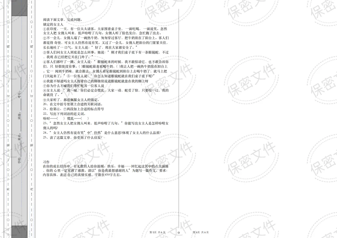 天津市南开中学语文新初一分班试卷