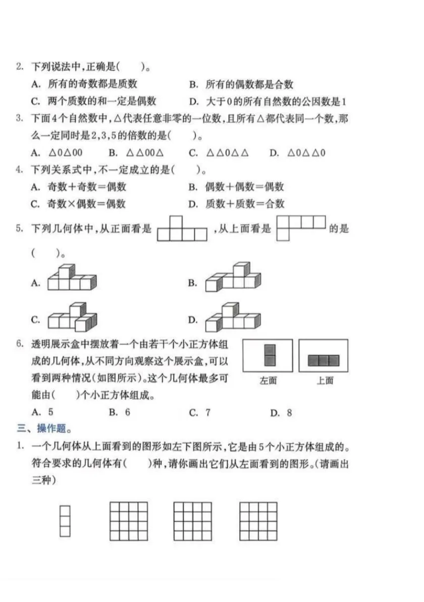 数学五年级下册第一次月考试卷,含答案