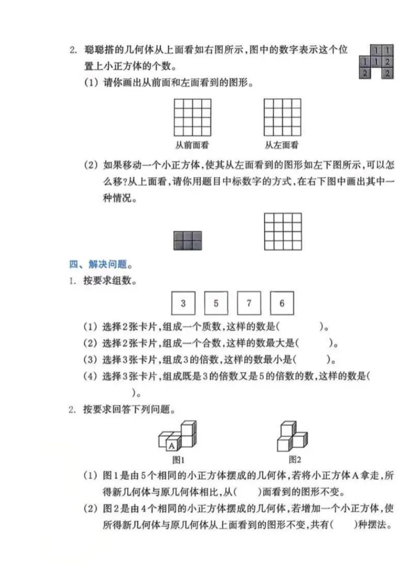2026春数学五年级下册第一次月考试卷,含答案