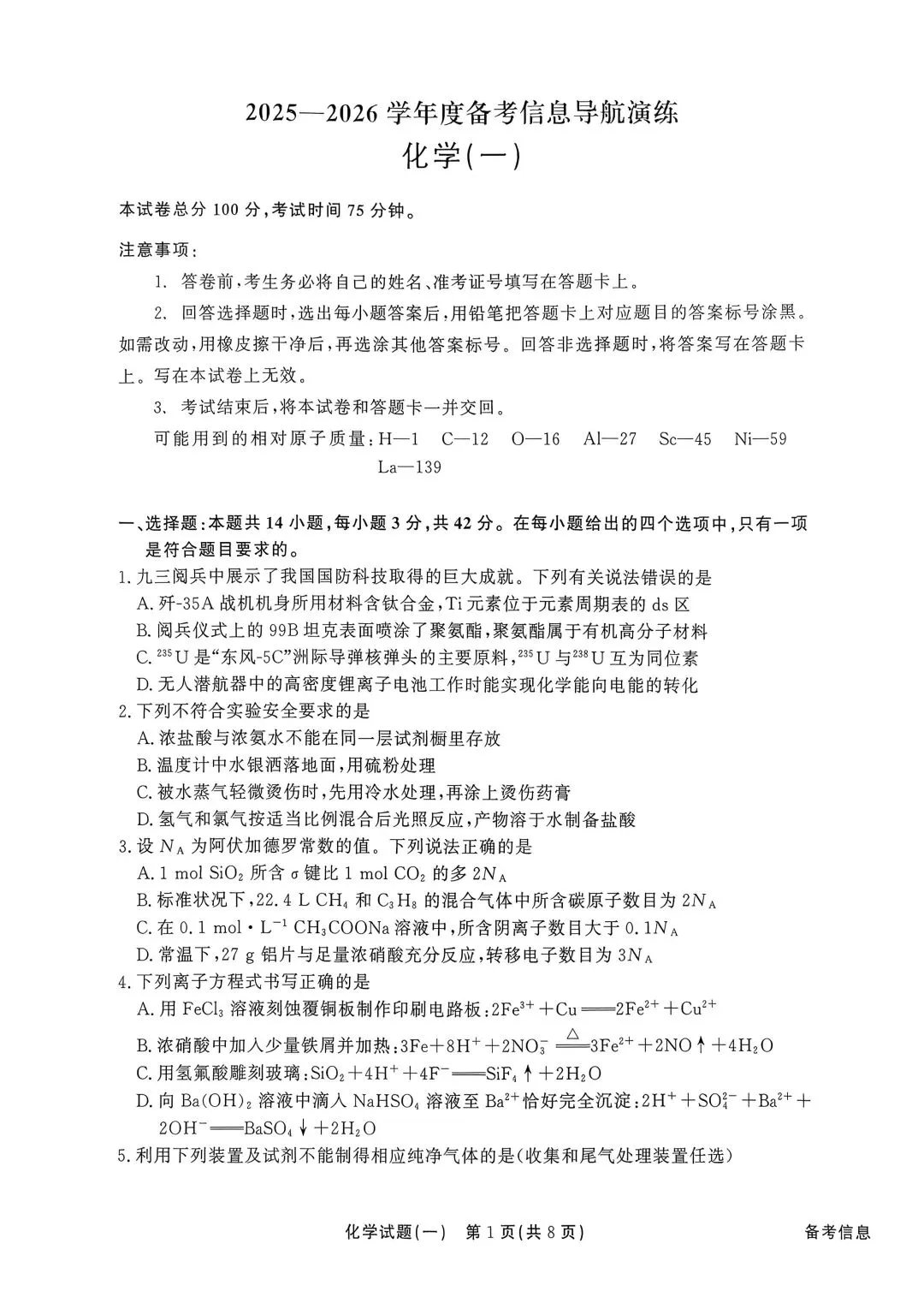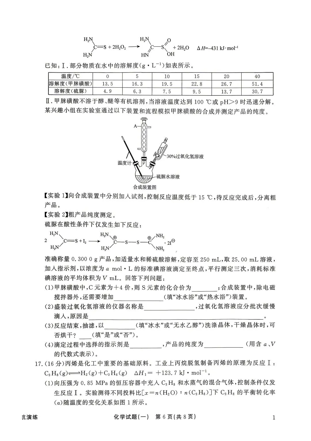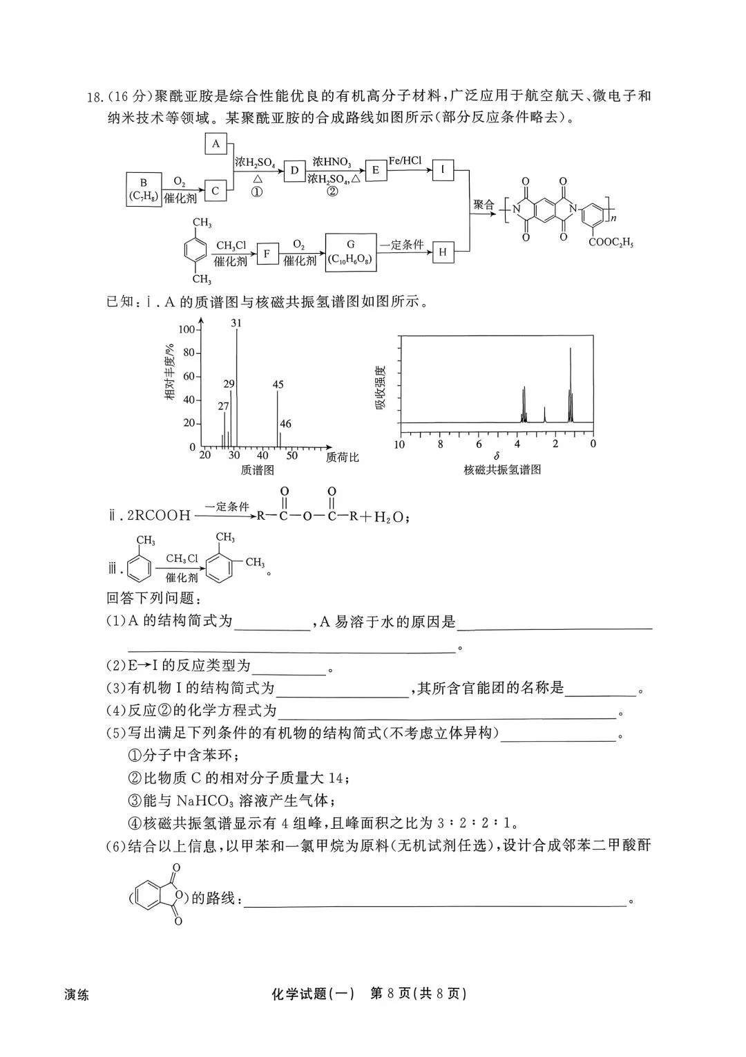 >分享一套化学试卷(答案在评论区)