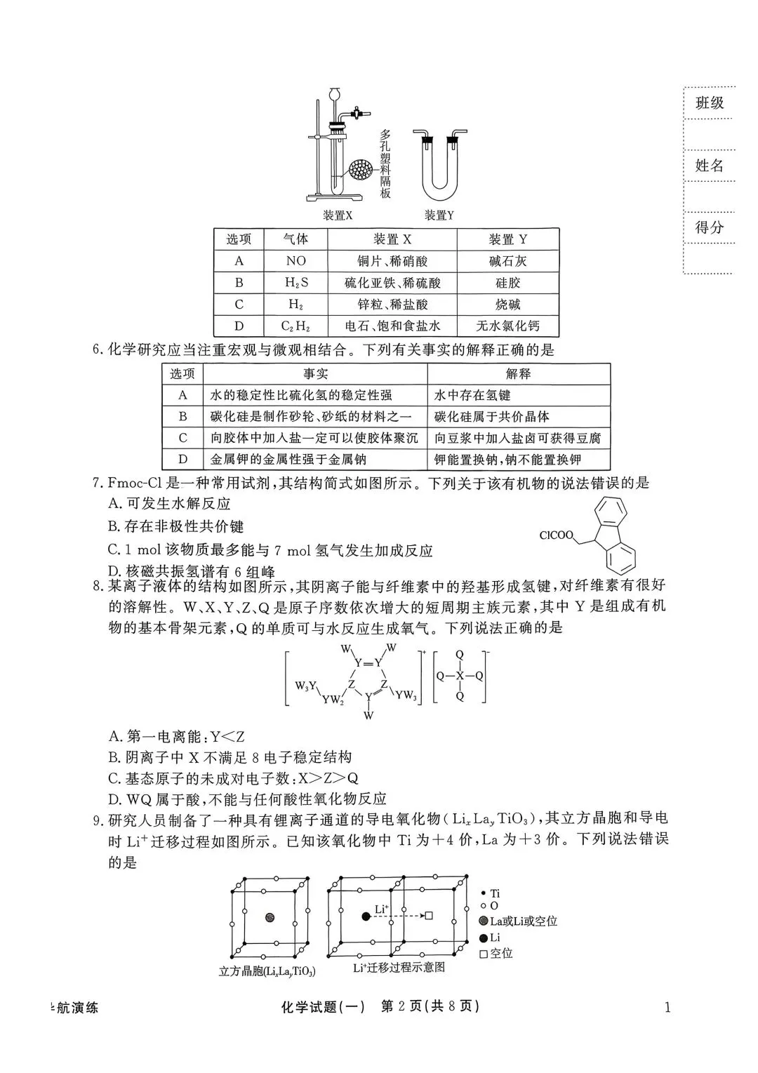 分享一套化学试卷(答案在评论区)