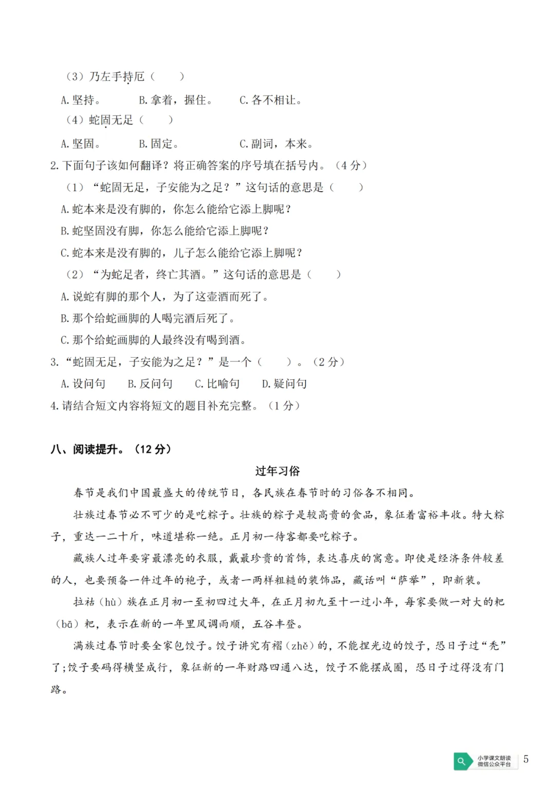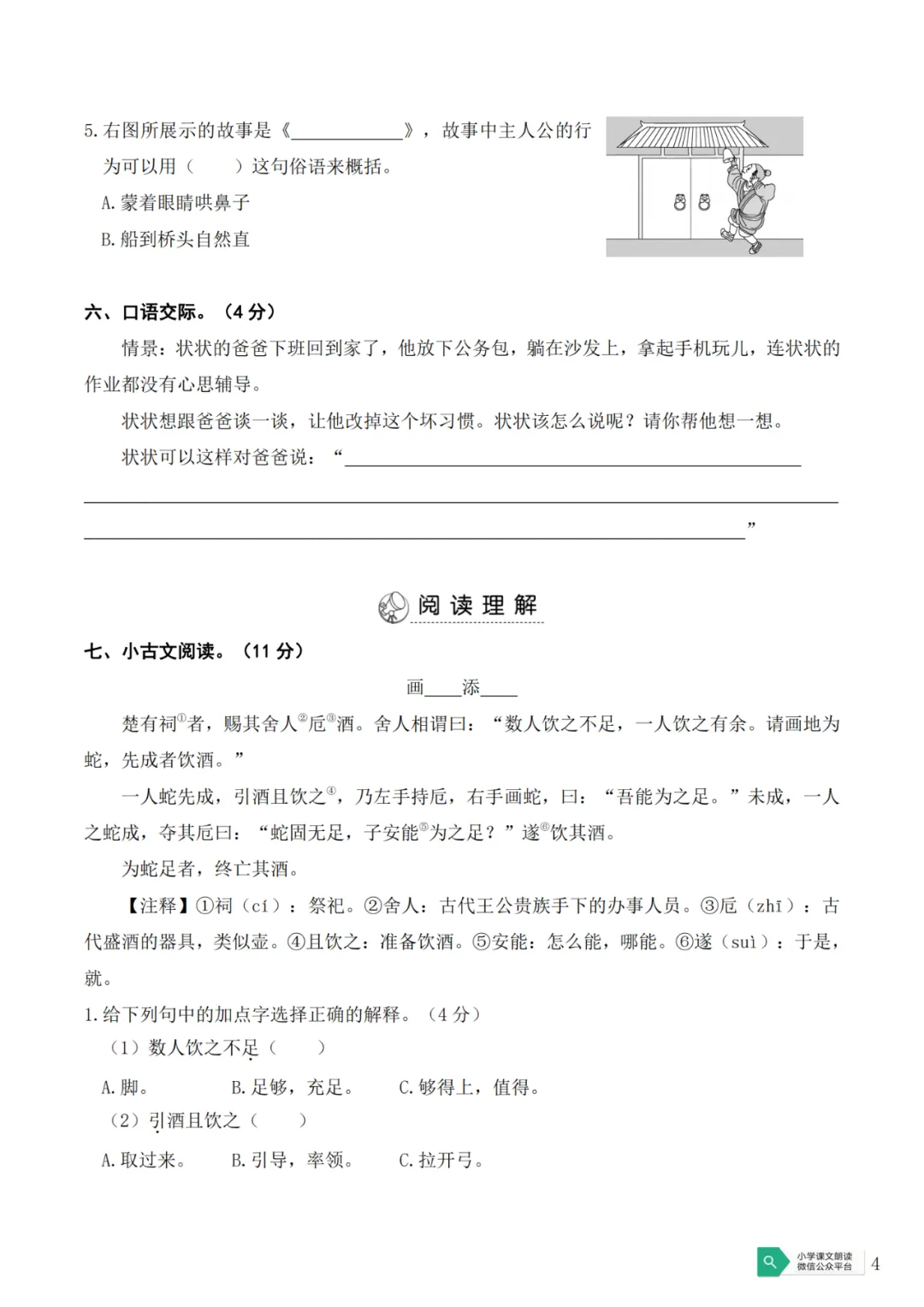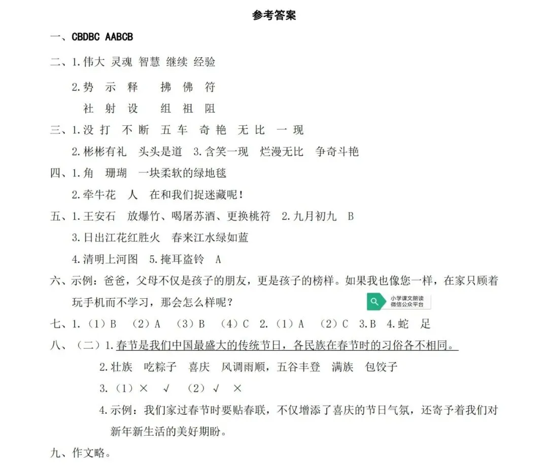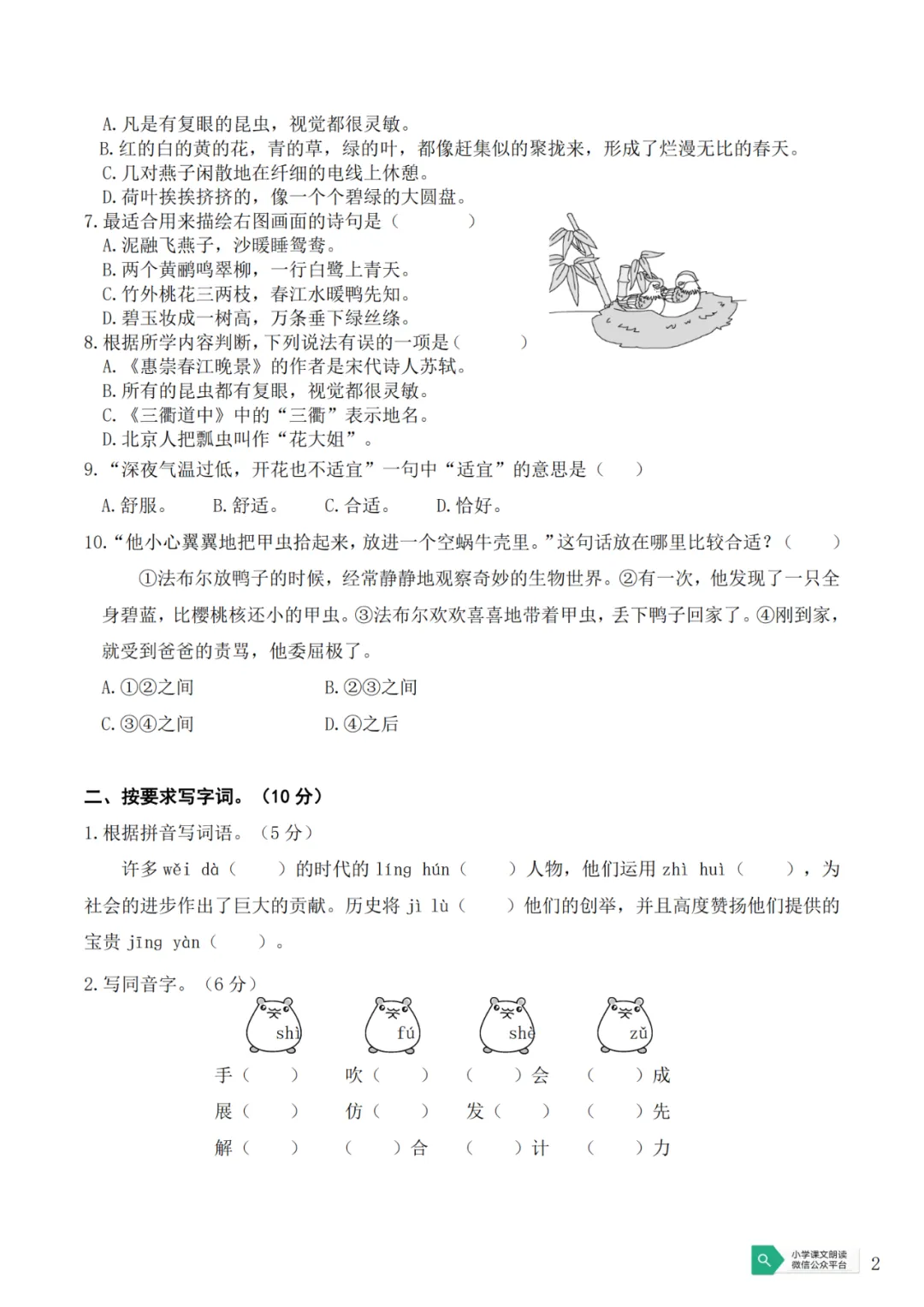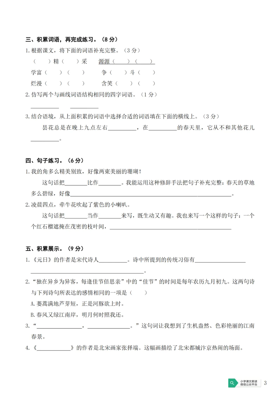 天津市南开中学语文新初一分班试卷