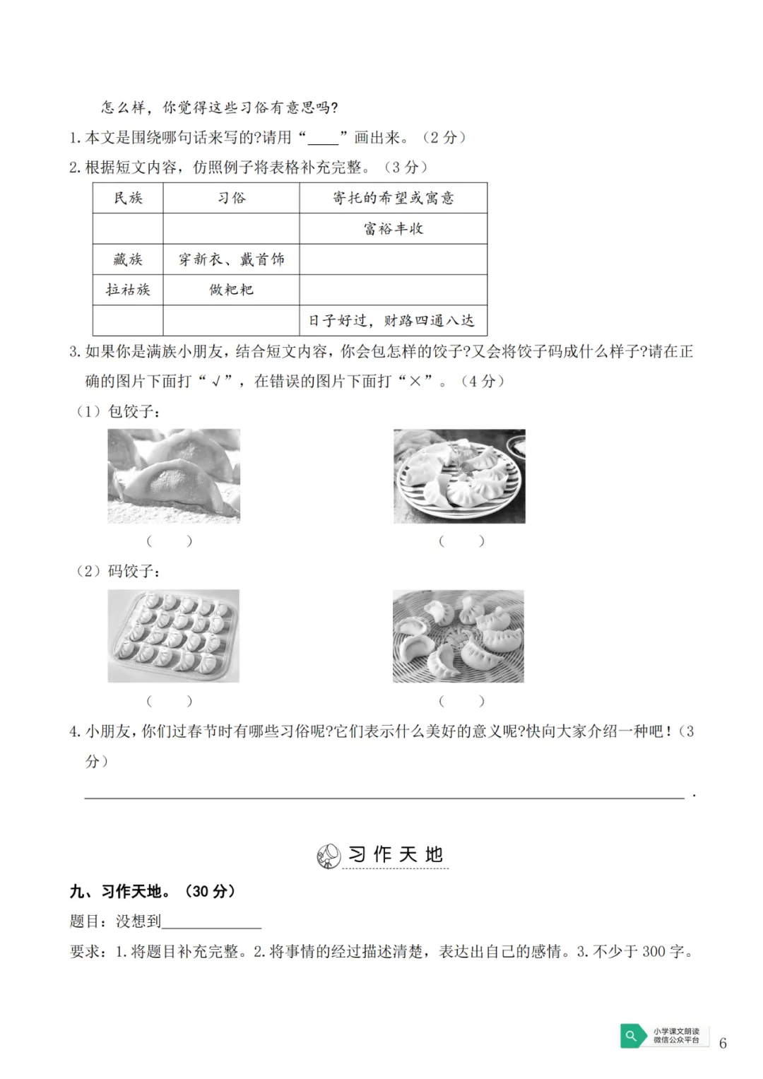 小学语/数/英《第一次月考试卷》1-6年级下册(PDF电子版,可下载打印)