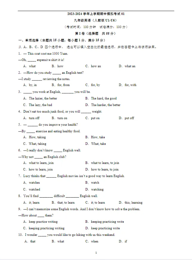 九下英语期中