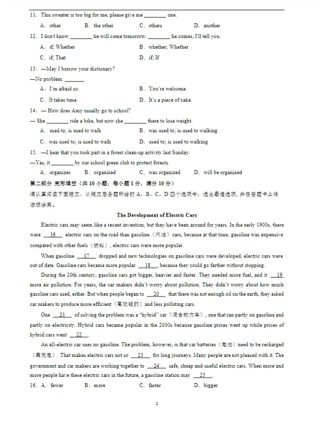 分享一套化学试卷(答案在评论区)