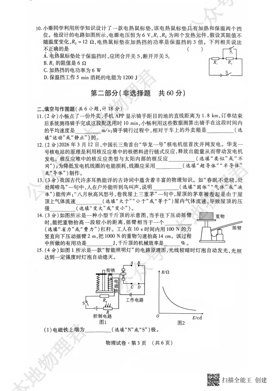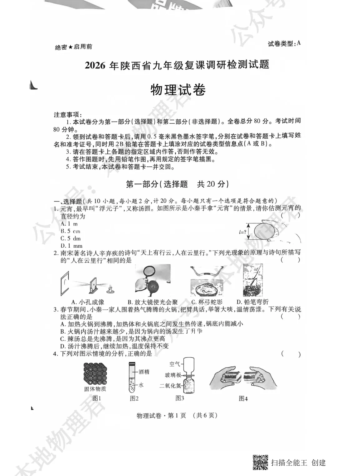 >2026咸阳市渭城区初三一模物理试卷