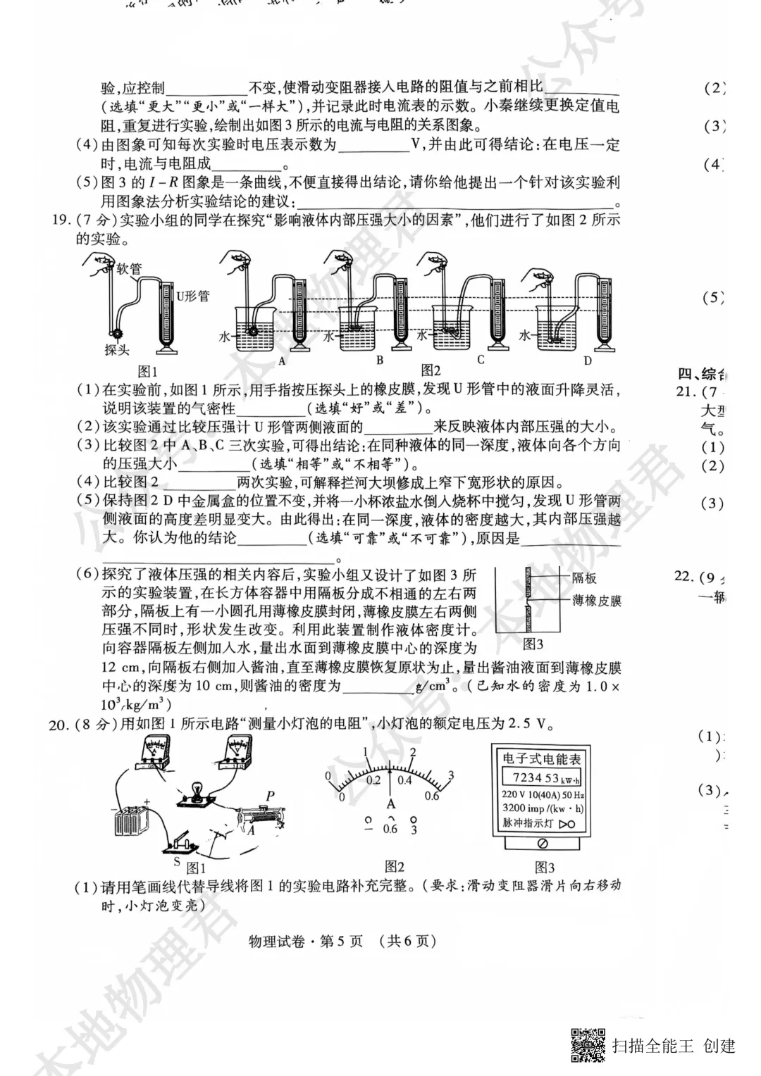 26初三历下区一模物理试卷+解析