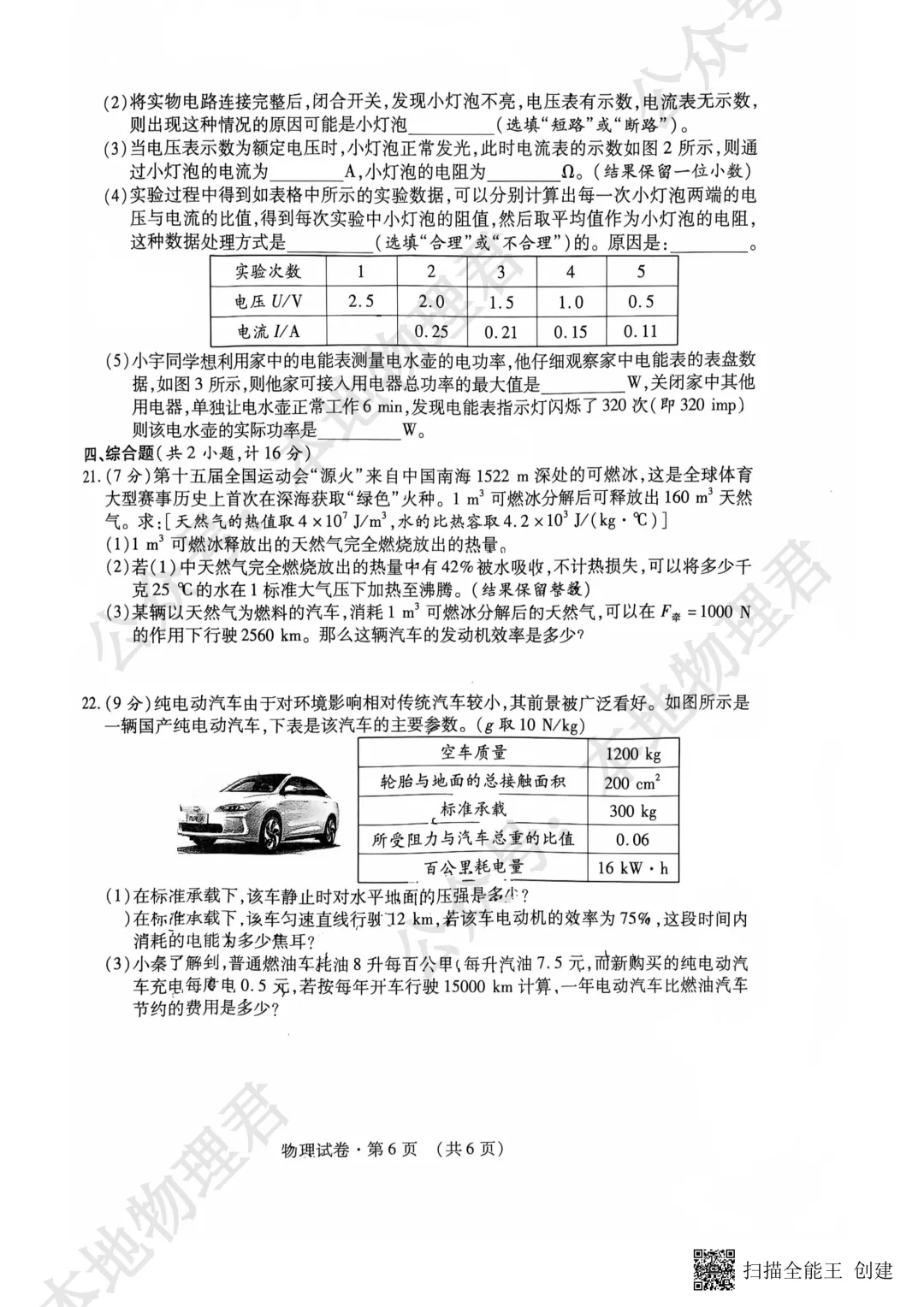 2026咸阳市渭城区初三一模物理试卷