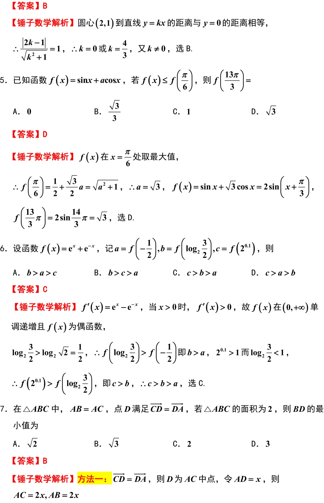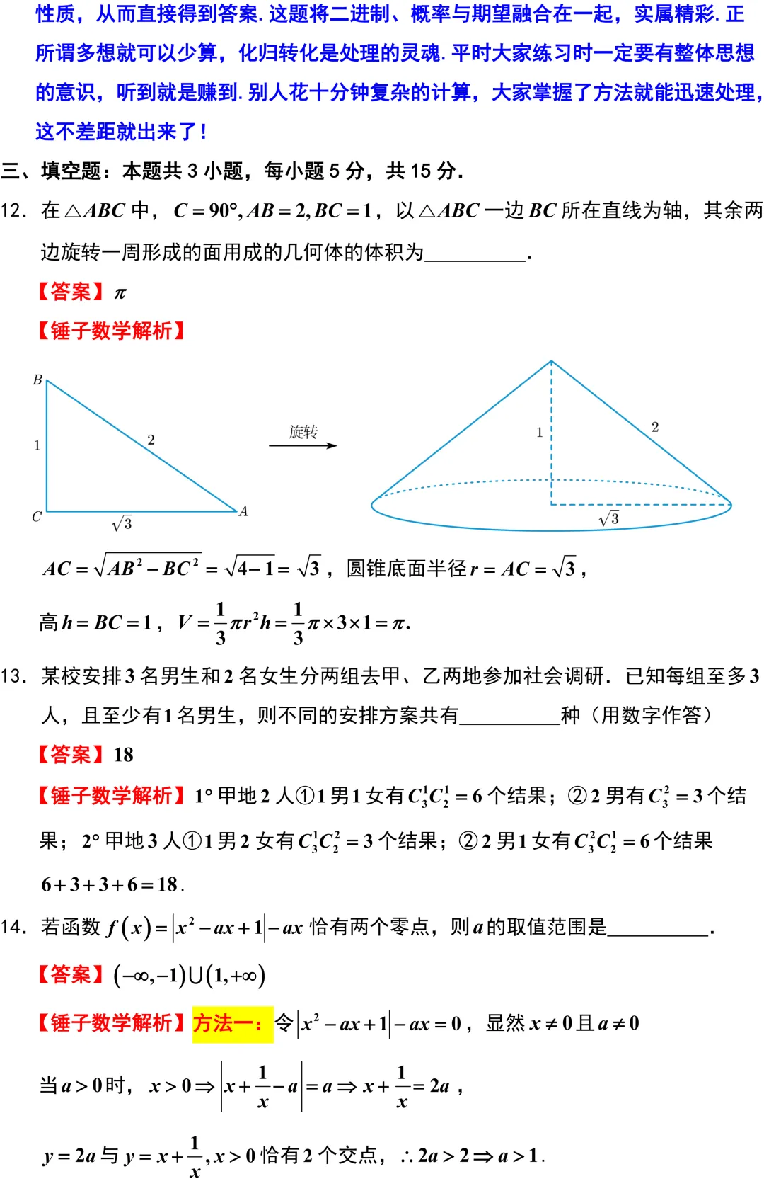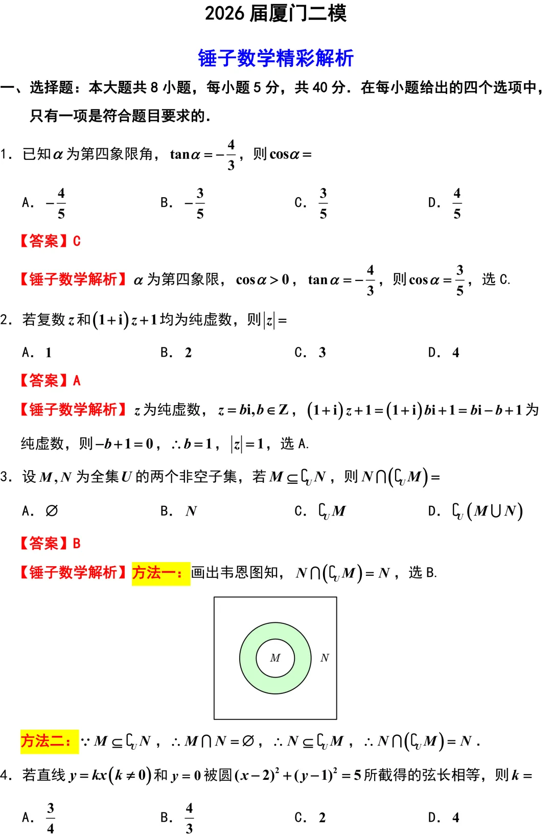 厦门二模质量相当高、创新力度大、思维量高!需要同学们在硬算和巧解之间做出聪明的选择.