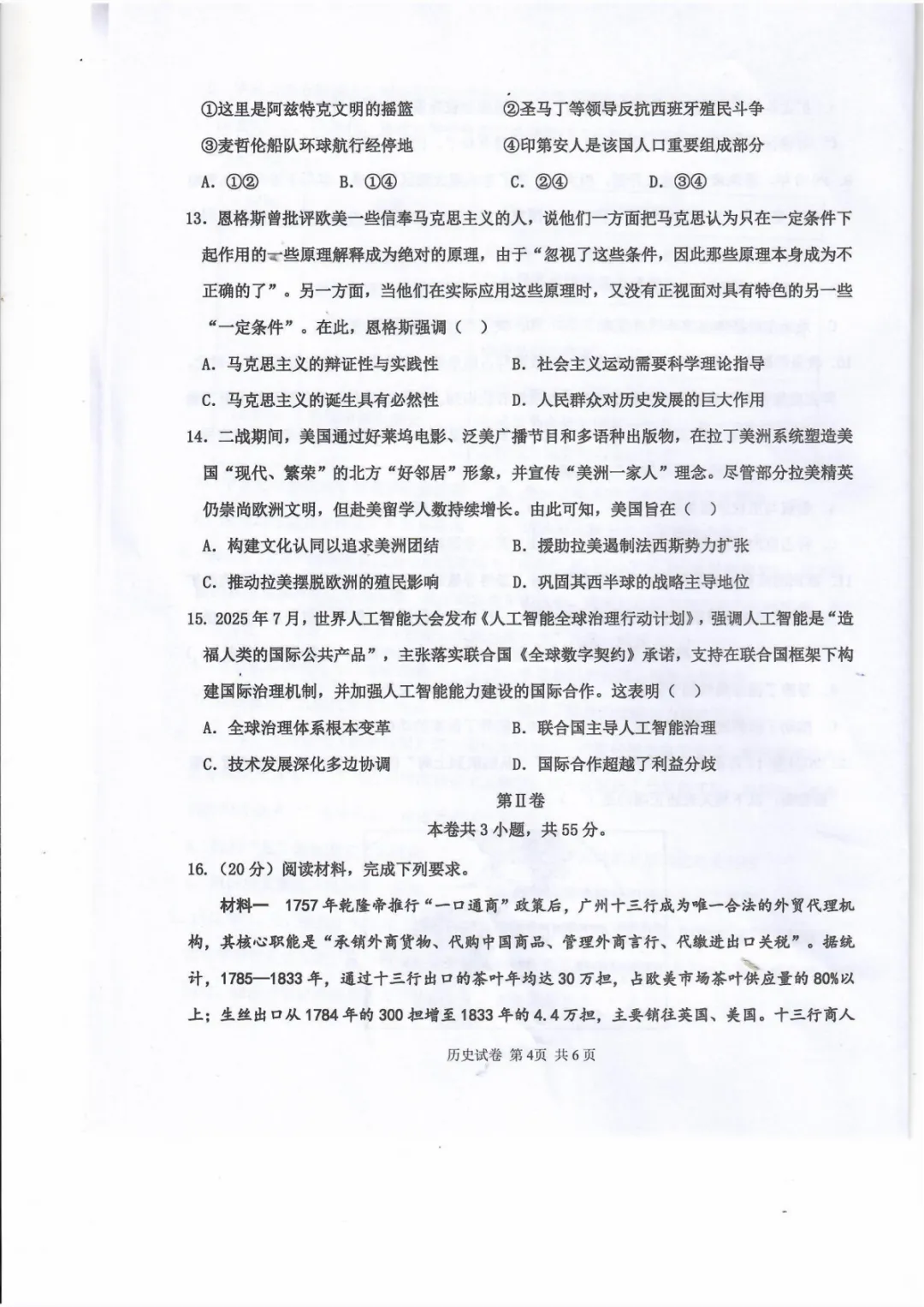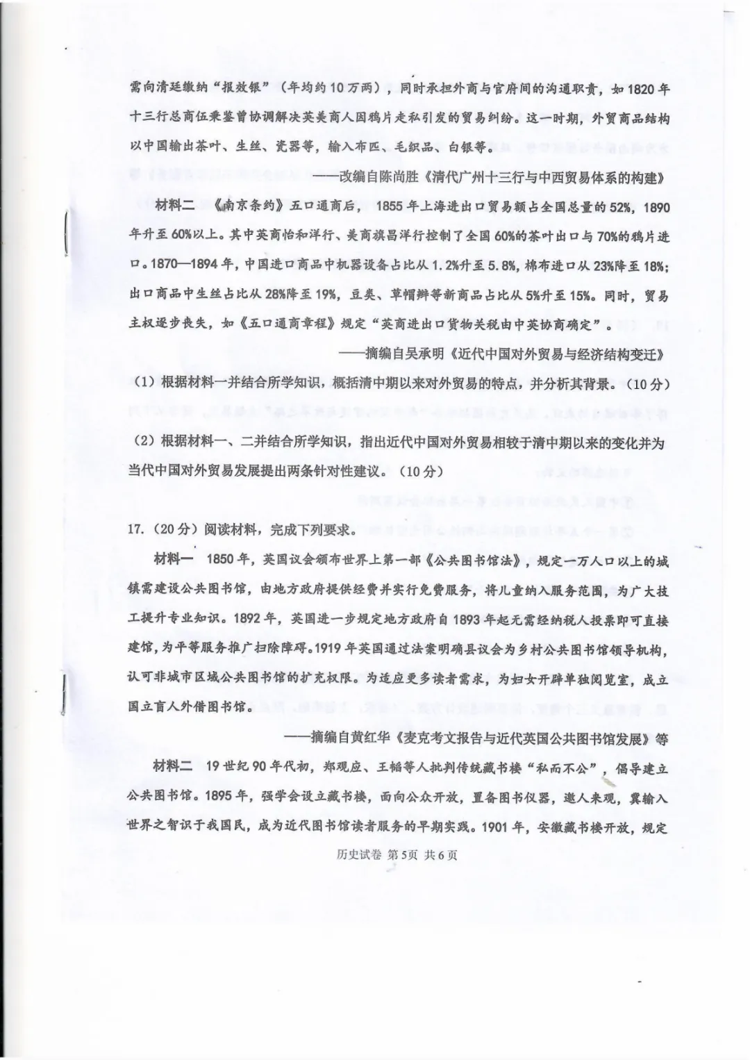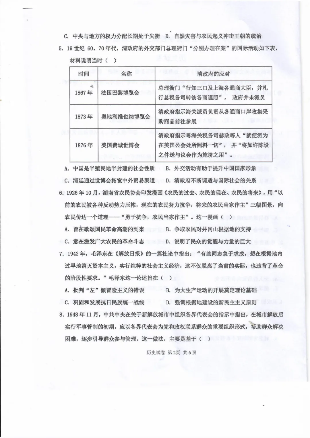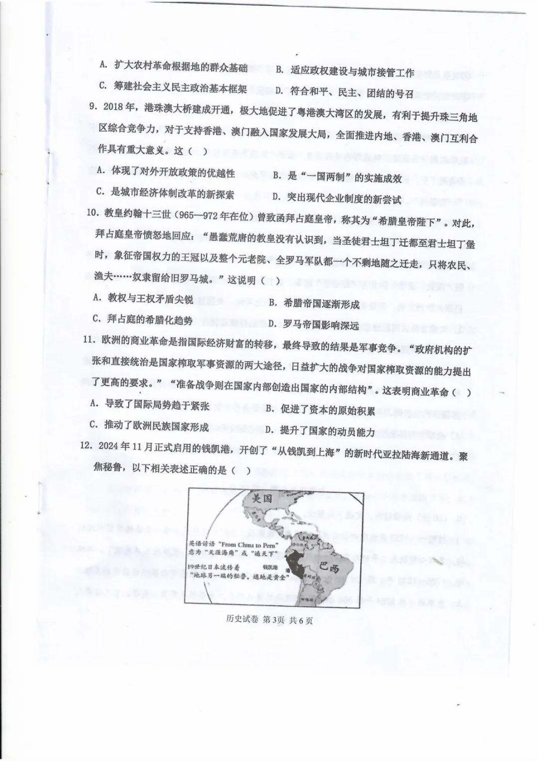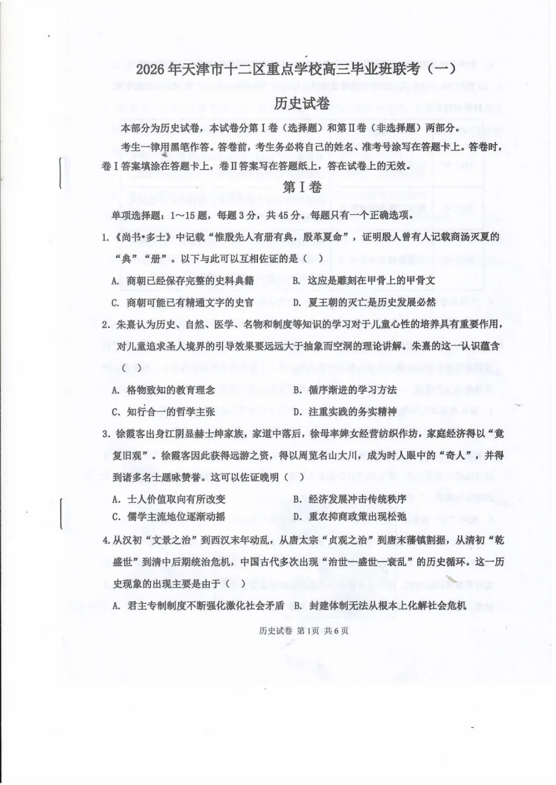 试卷分享:高三历史十二校联考一模