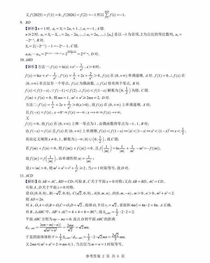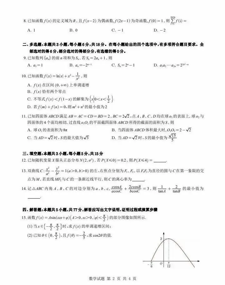 2026届高三数学试卷及答案