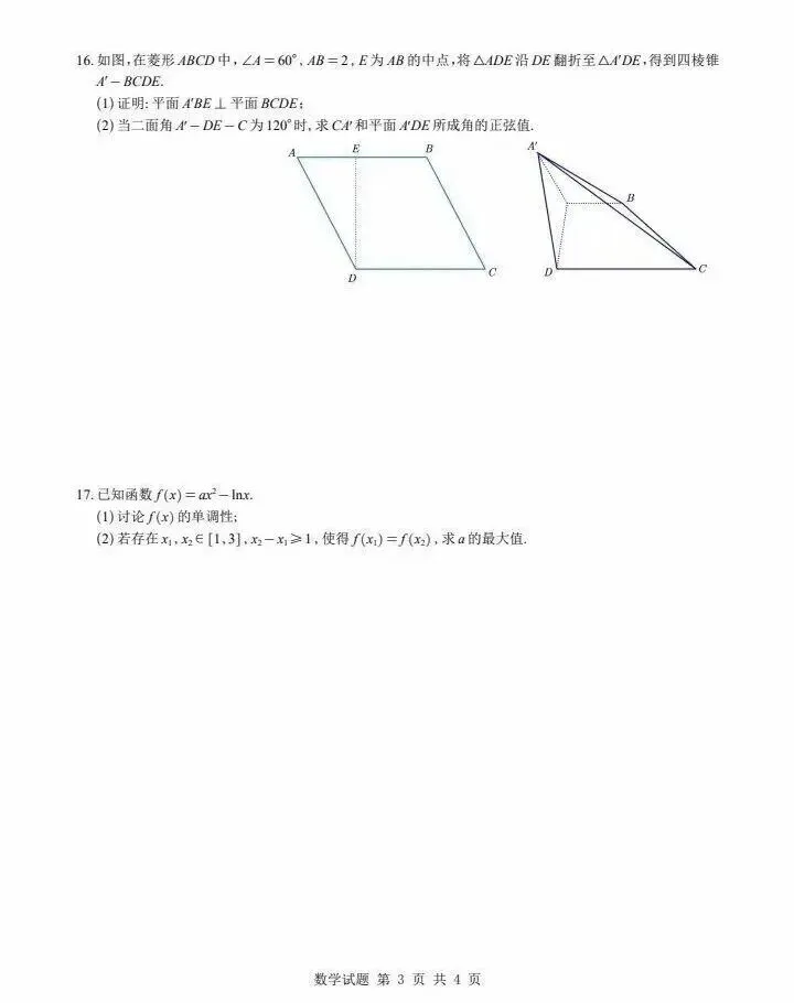 >2026届高三数学试卷及答案