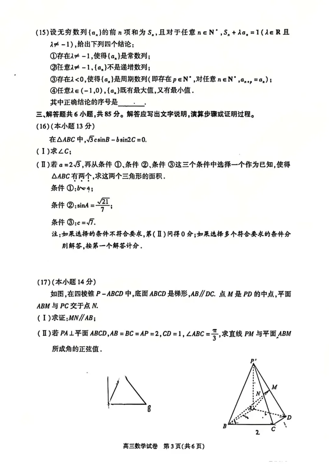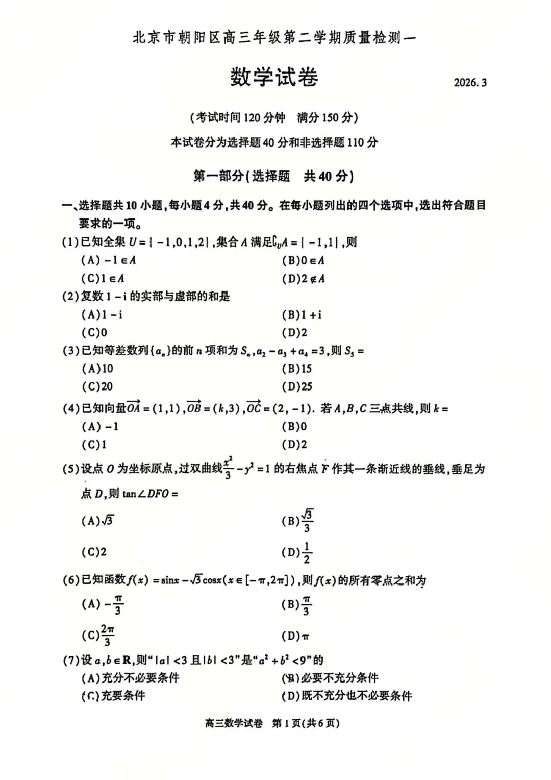 2026年朝阳区高三数学一模试卷