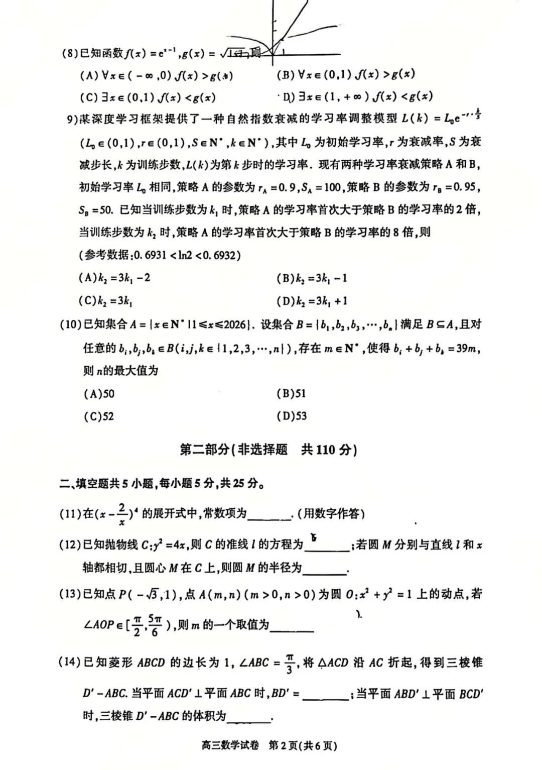 2026届高三数学试卷及答案