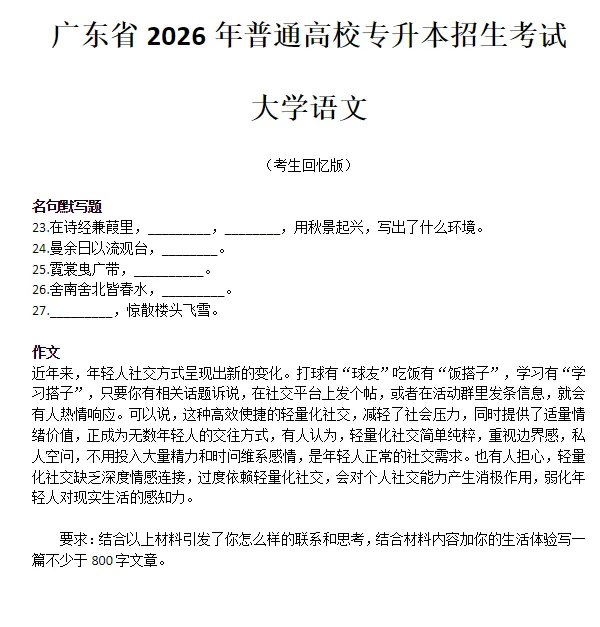 2026年广东专插本考试结束,小狮整理了真题及参考答案,一起来看看吧👇