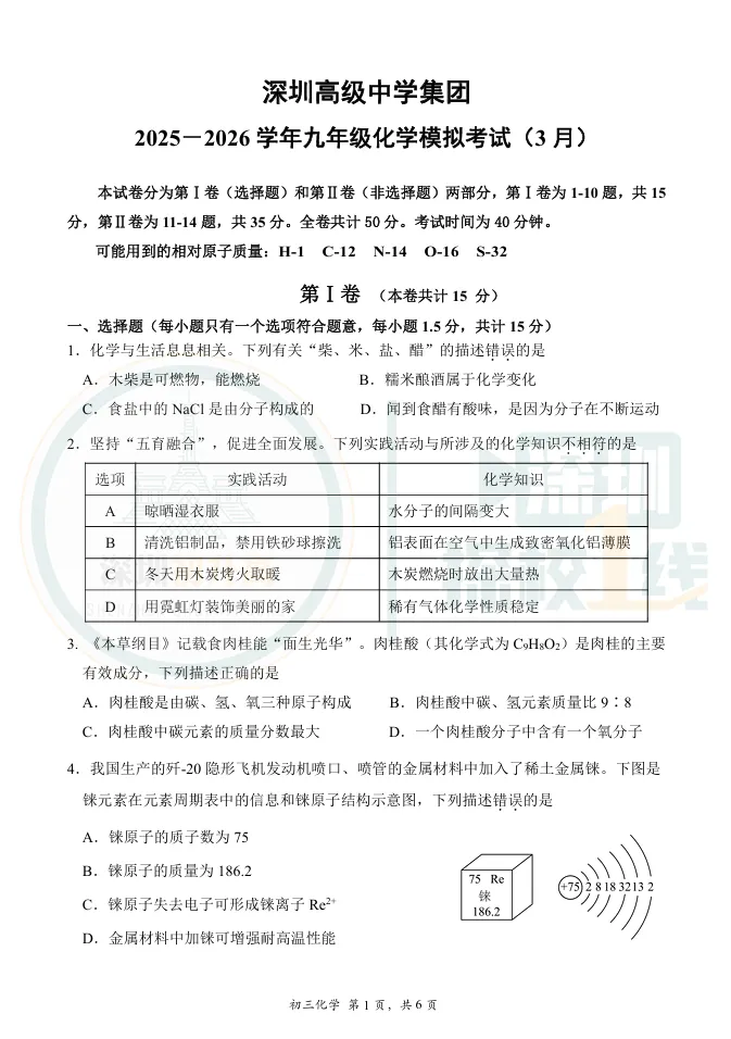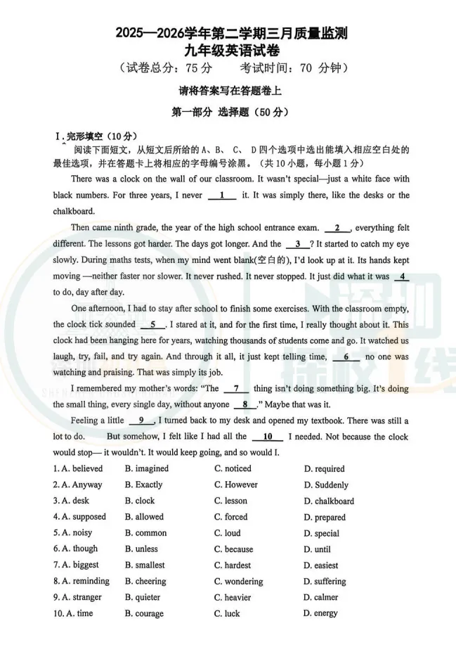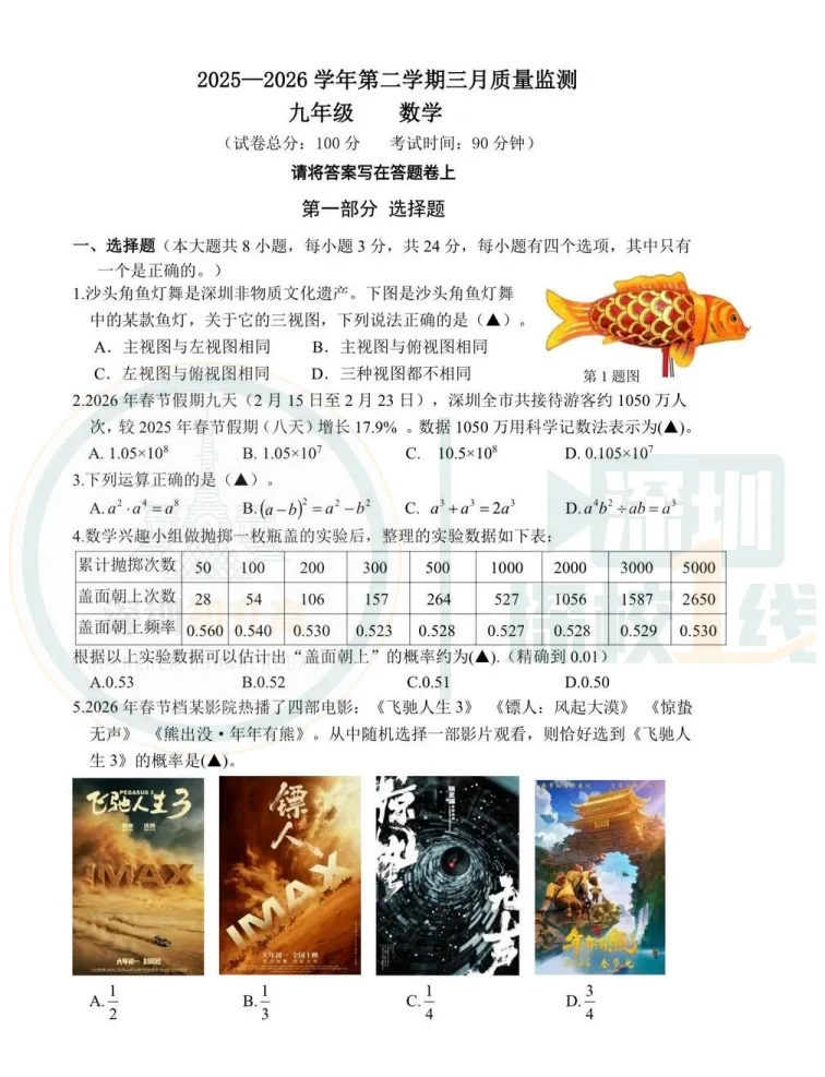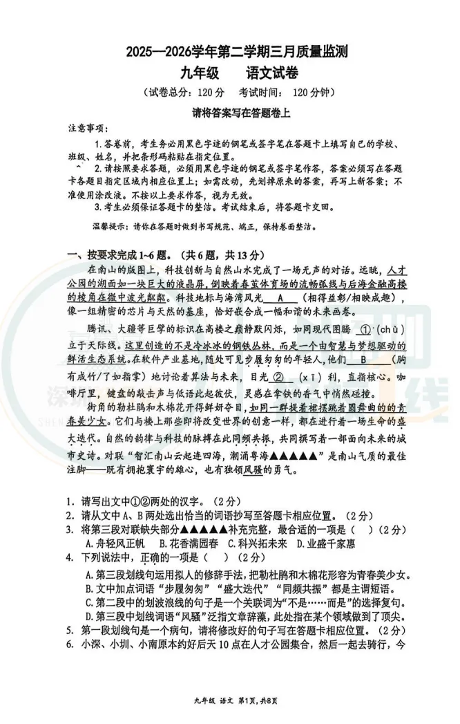 最新!深中体系&南实集团初三一模考试卷出炉!