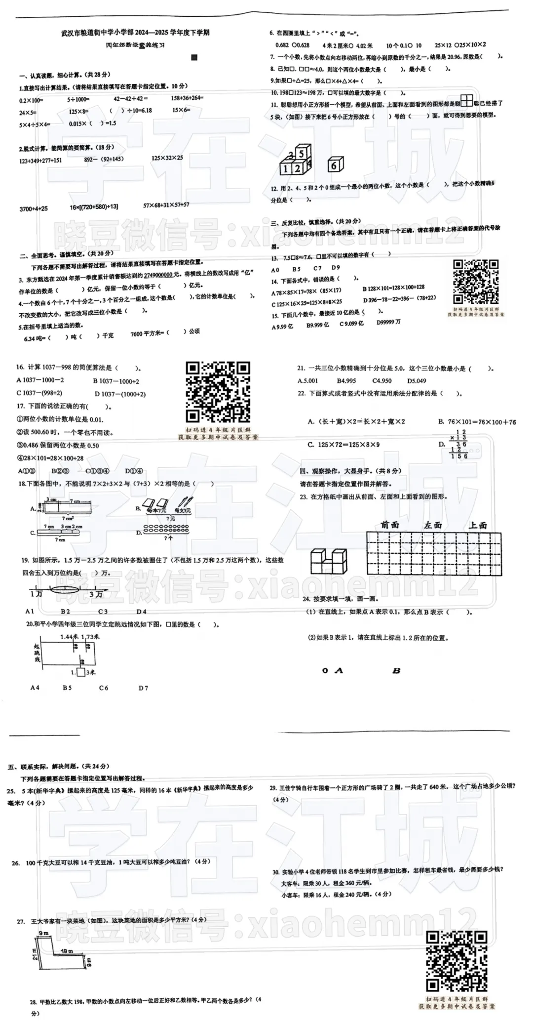 【4年级武昌区实验小学数学试卷】2024-2025下学期